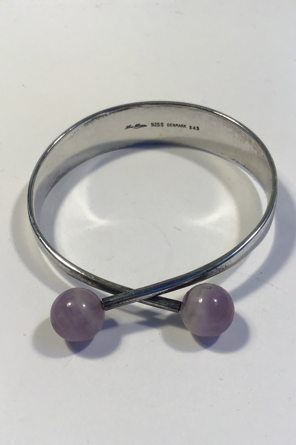 Hans Hansen Sterling Sølv Armring No 243 Lilla Quartz Invendig Diam 6 cm Vægt 41 gr