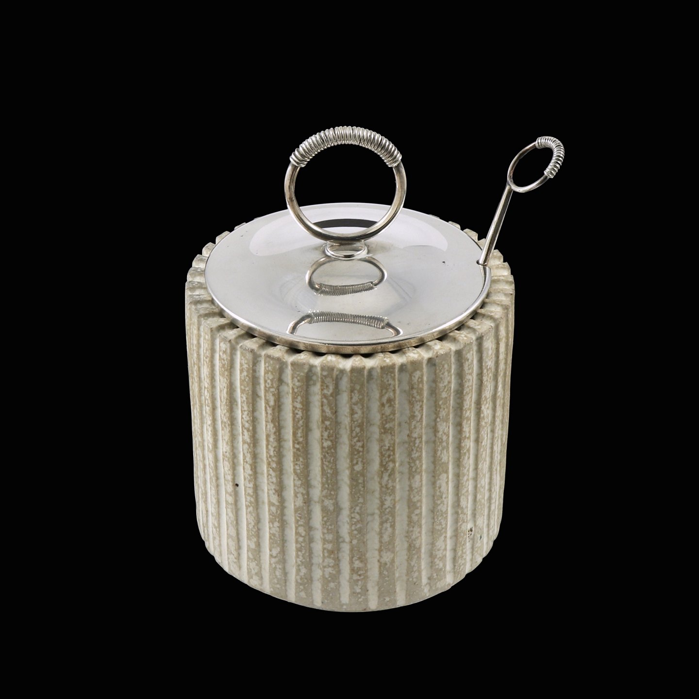 Arne Bang - Hingelberg. Krukke i stentøj med låg samt ske i Sterling Sølv.