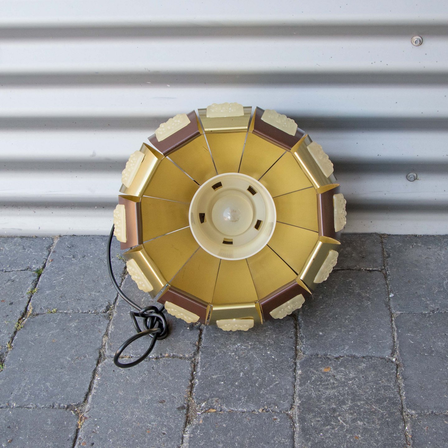 Rund pendel i aluminium med gyldne og brun farvede lameller