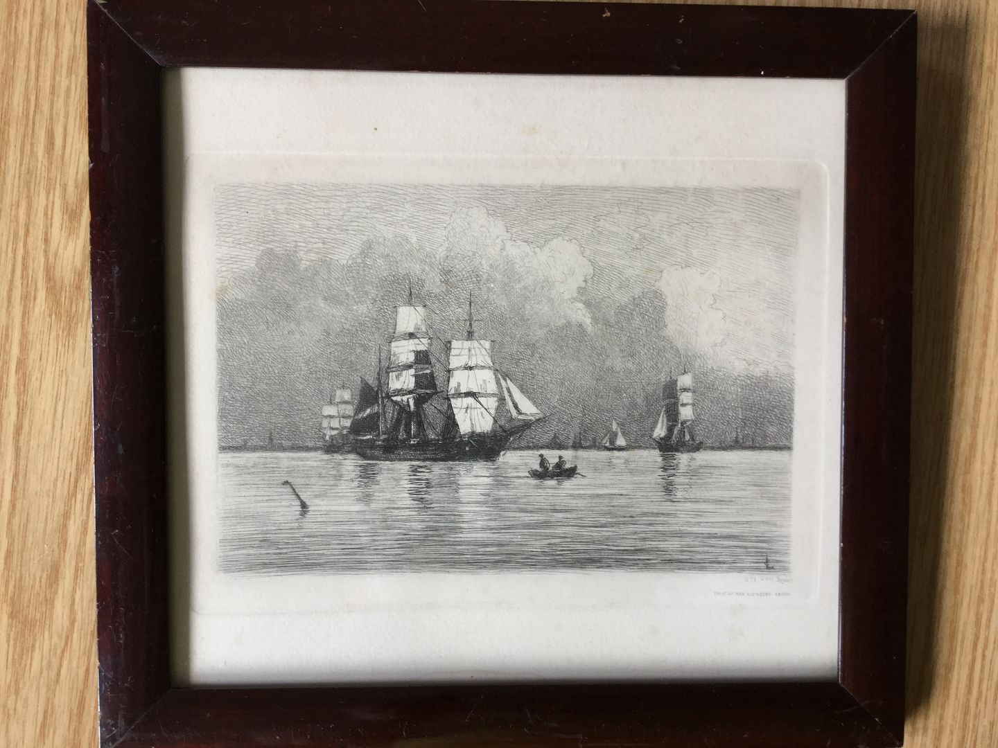 Indrammet i mahogniramme.