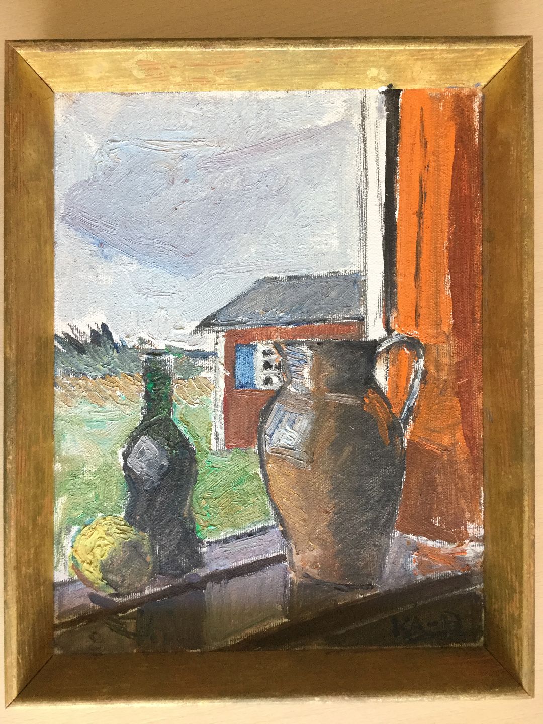 Maleri K.A. Borchsenius - Opstilling med kande, flaske og æble.