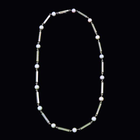 F. Hingelberg. Halskæde 14k hvidguld med perler. 1960'erne