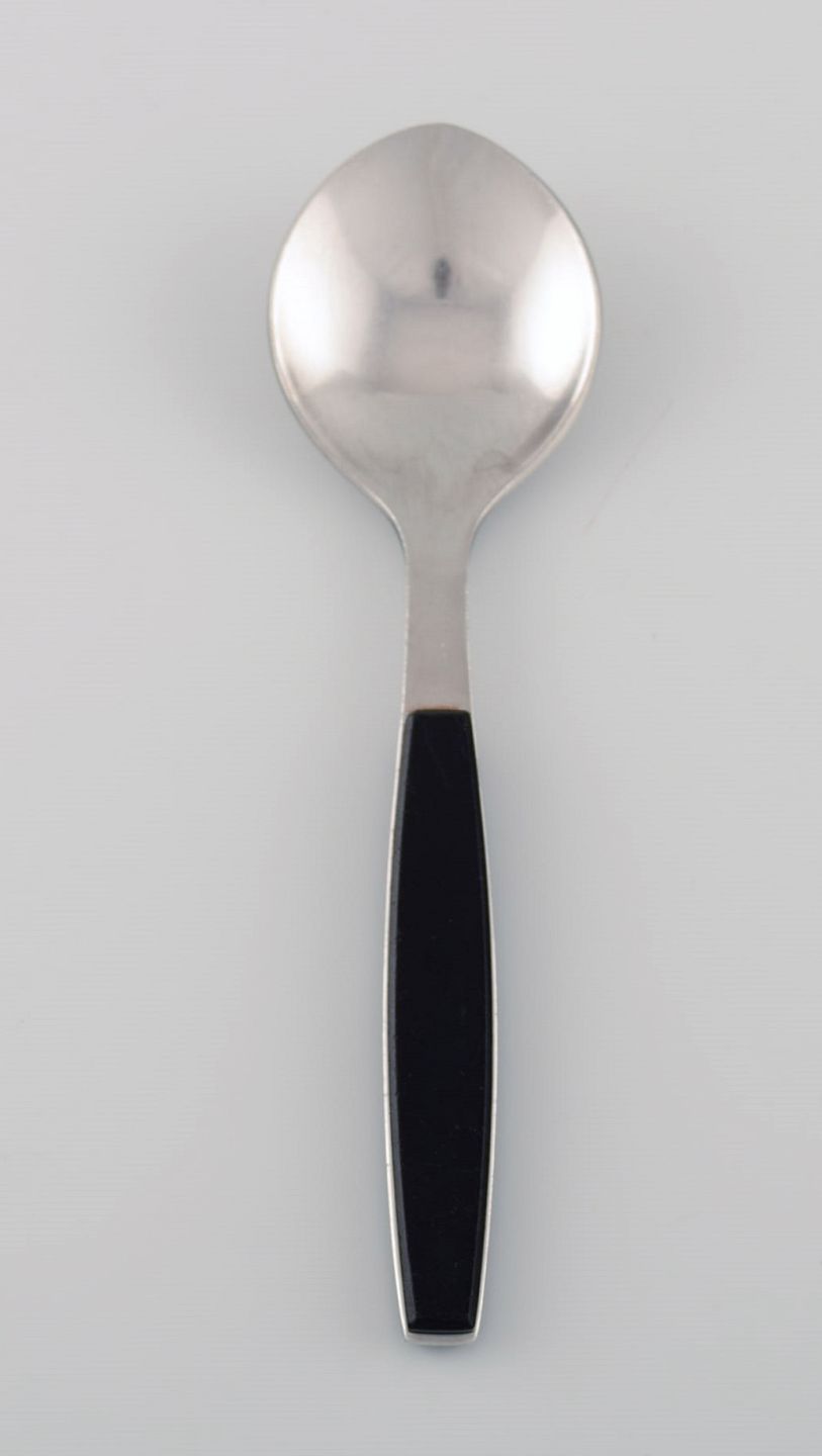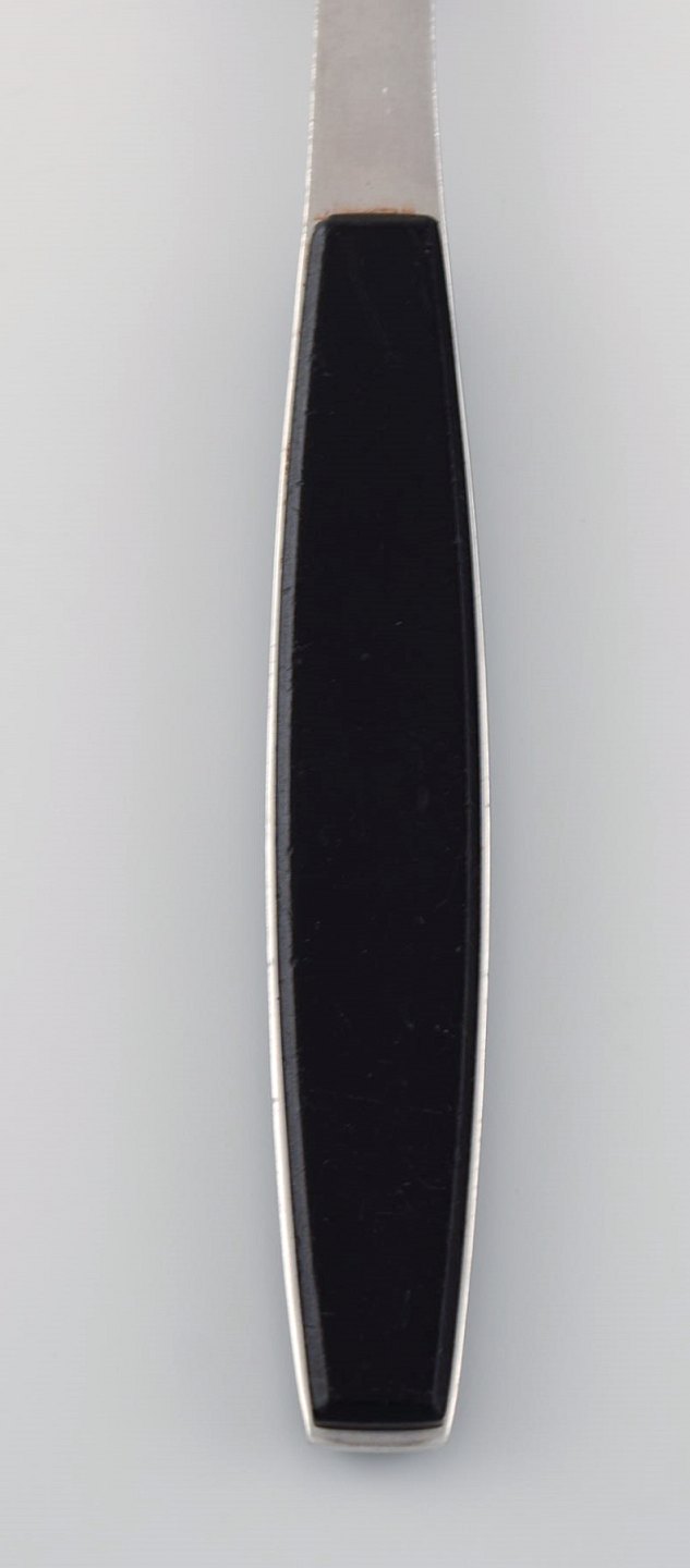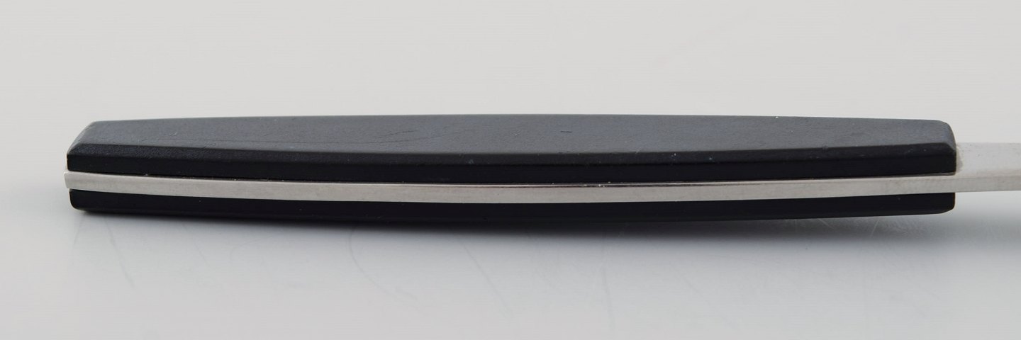 Henning Koppel for Georg Jensen. Strata dessertske i rustfrit stål og sort plast. 1960/70'erne. 9 stk på lager.