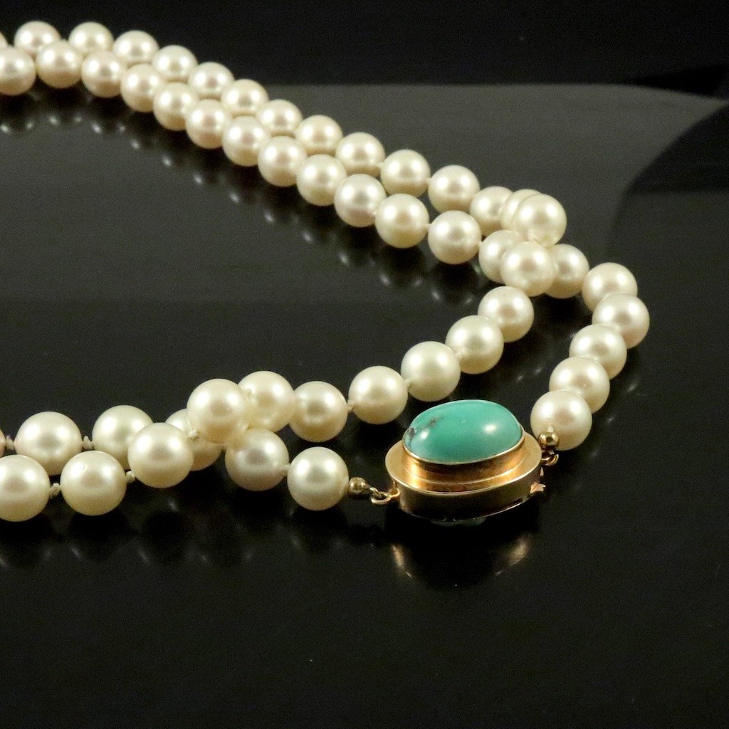 Just Andersen. Perlehalskæde med låse i 18k Guld med turkis.
