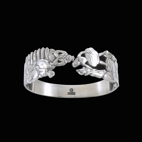 Servietring i sølv med motiv fra H.C. Andersens eventyr.