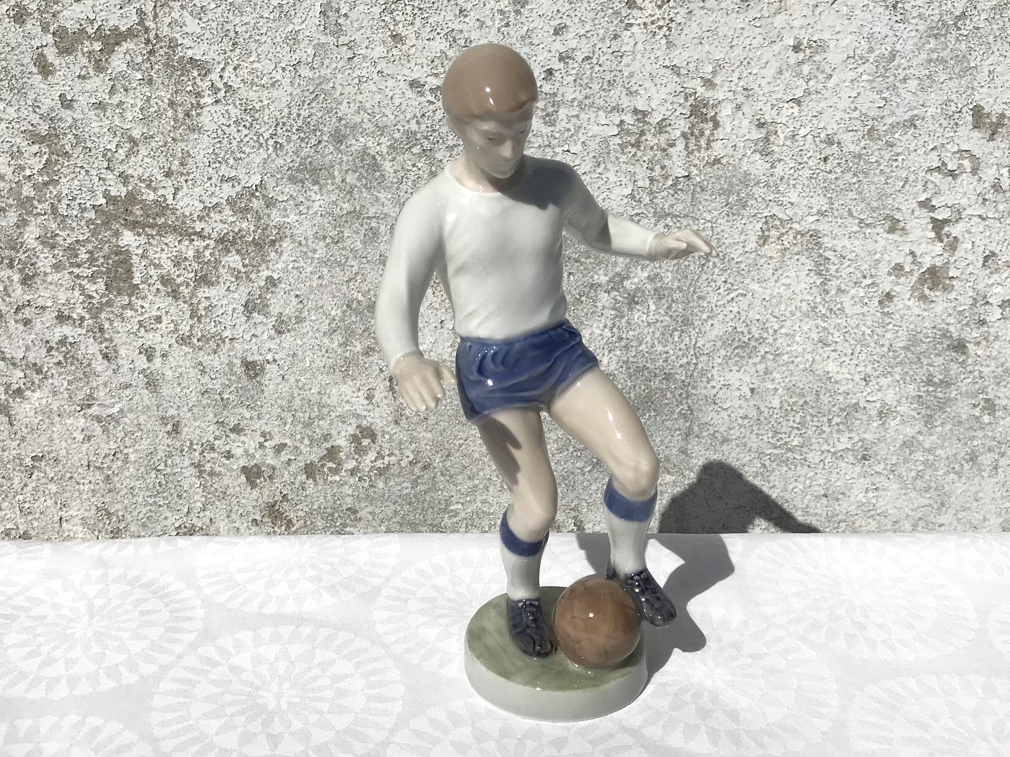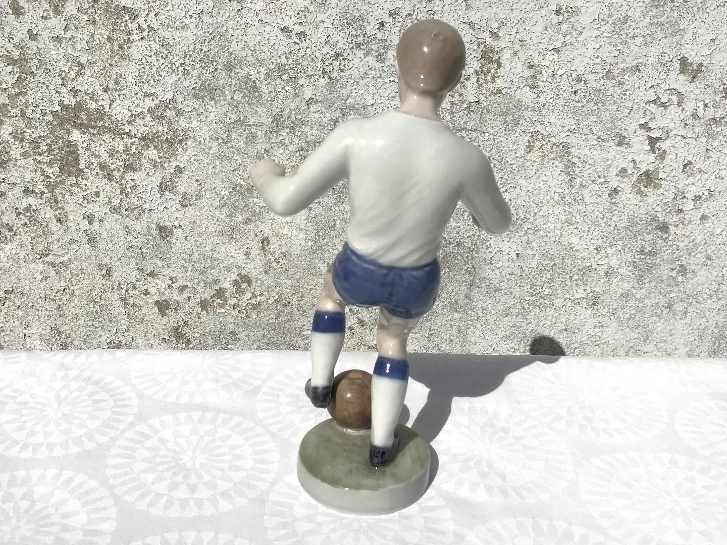 Royal Copenhagen, Fodboldspiller #4989, 19cm høj, 12cm bred, Medarbejdersortering, Design John Galster *Pæn men med glasur fejl på bagsiden af under arm*