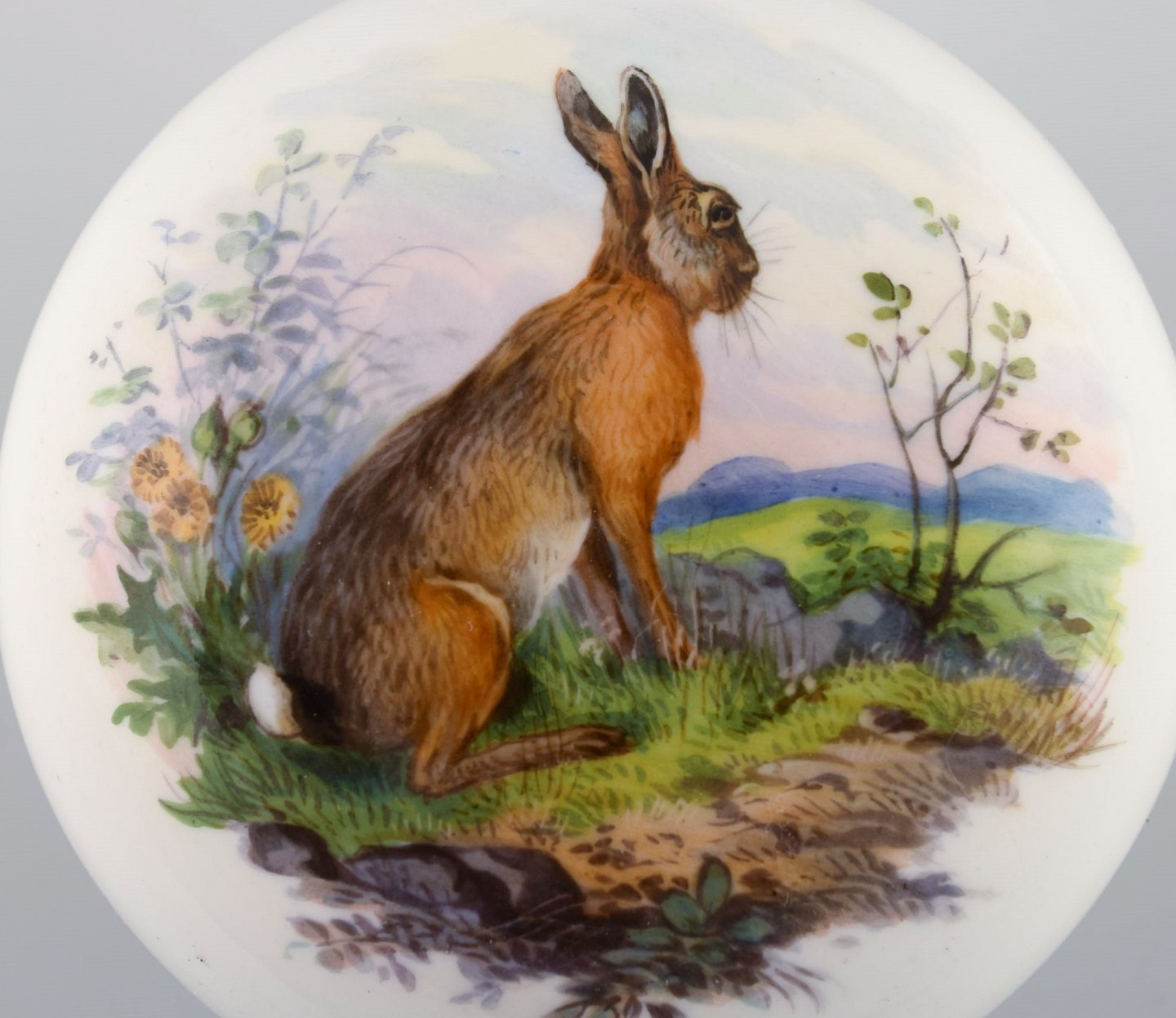 Meissen lågkrukke i håndmalet porcelæn med hare. 1900-tallet.