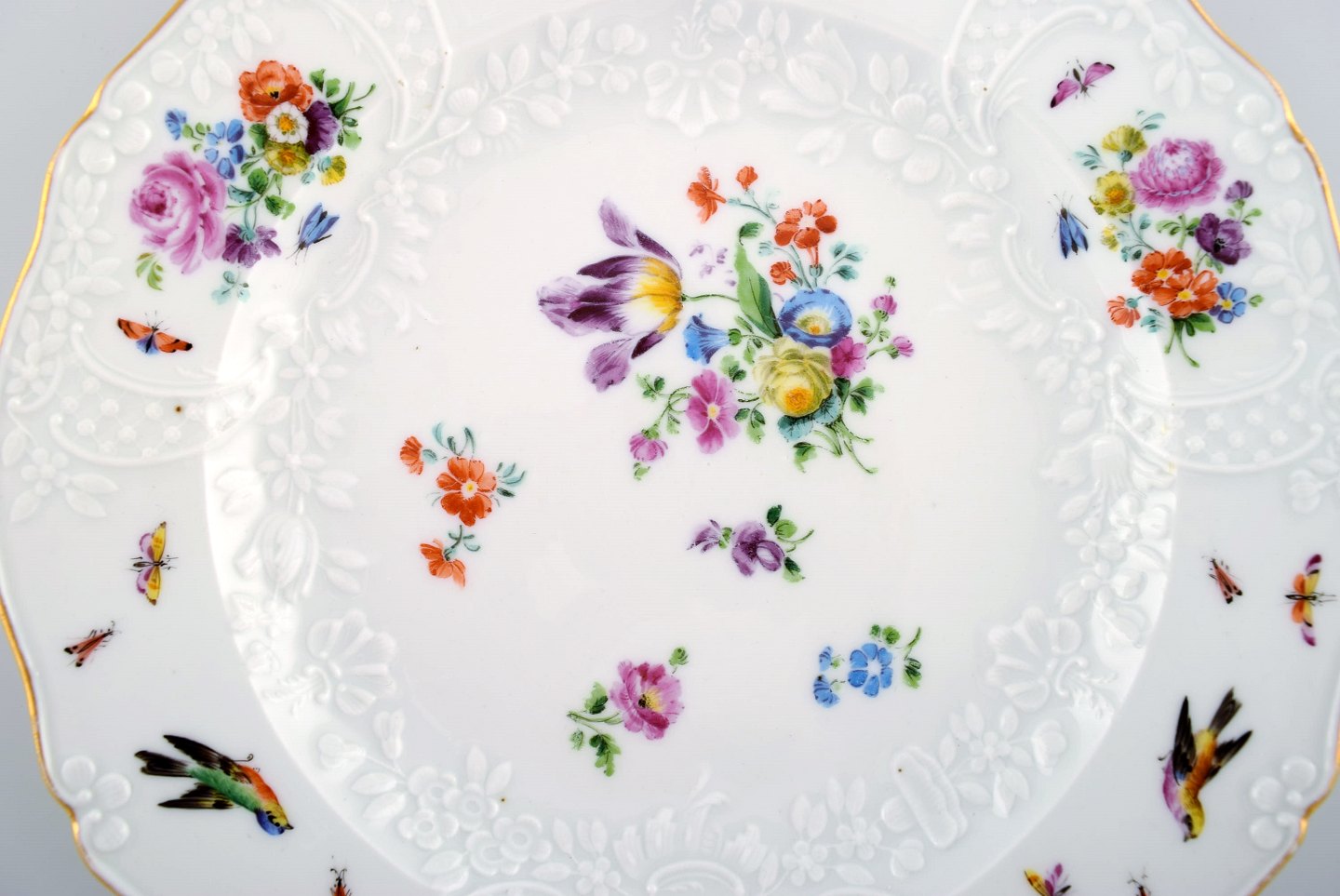 Antique Meissen plate in hand-painted porcelain with flowers and birds. 19th century.