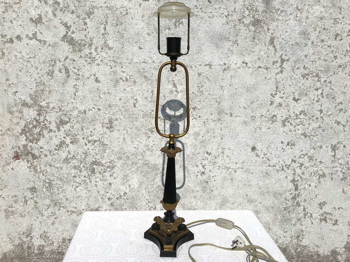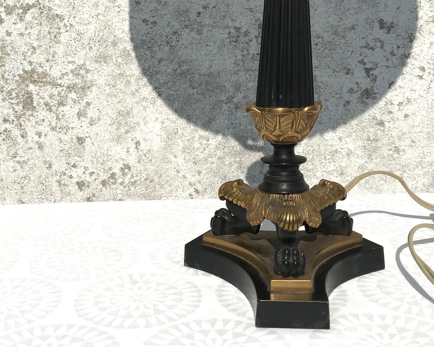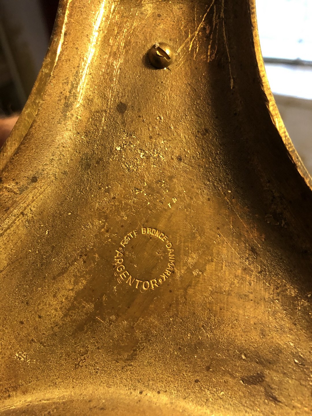 Table lamp with Le klint shade, 69cm high (Incl. Socket). Stamped Genuine Bronze, Denmark, Argentor * Nice condition *