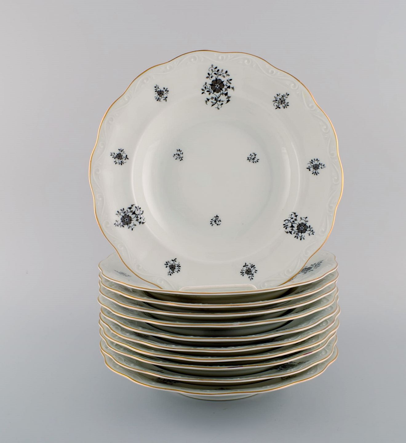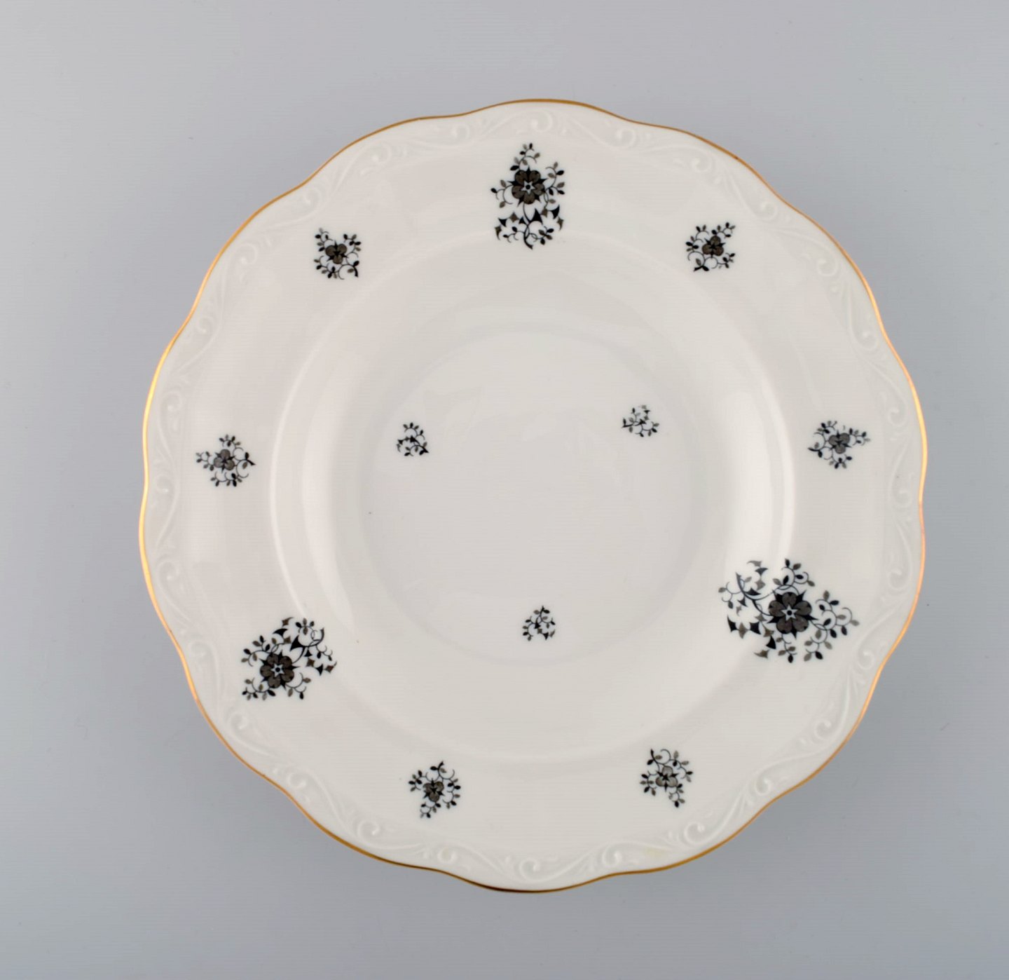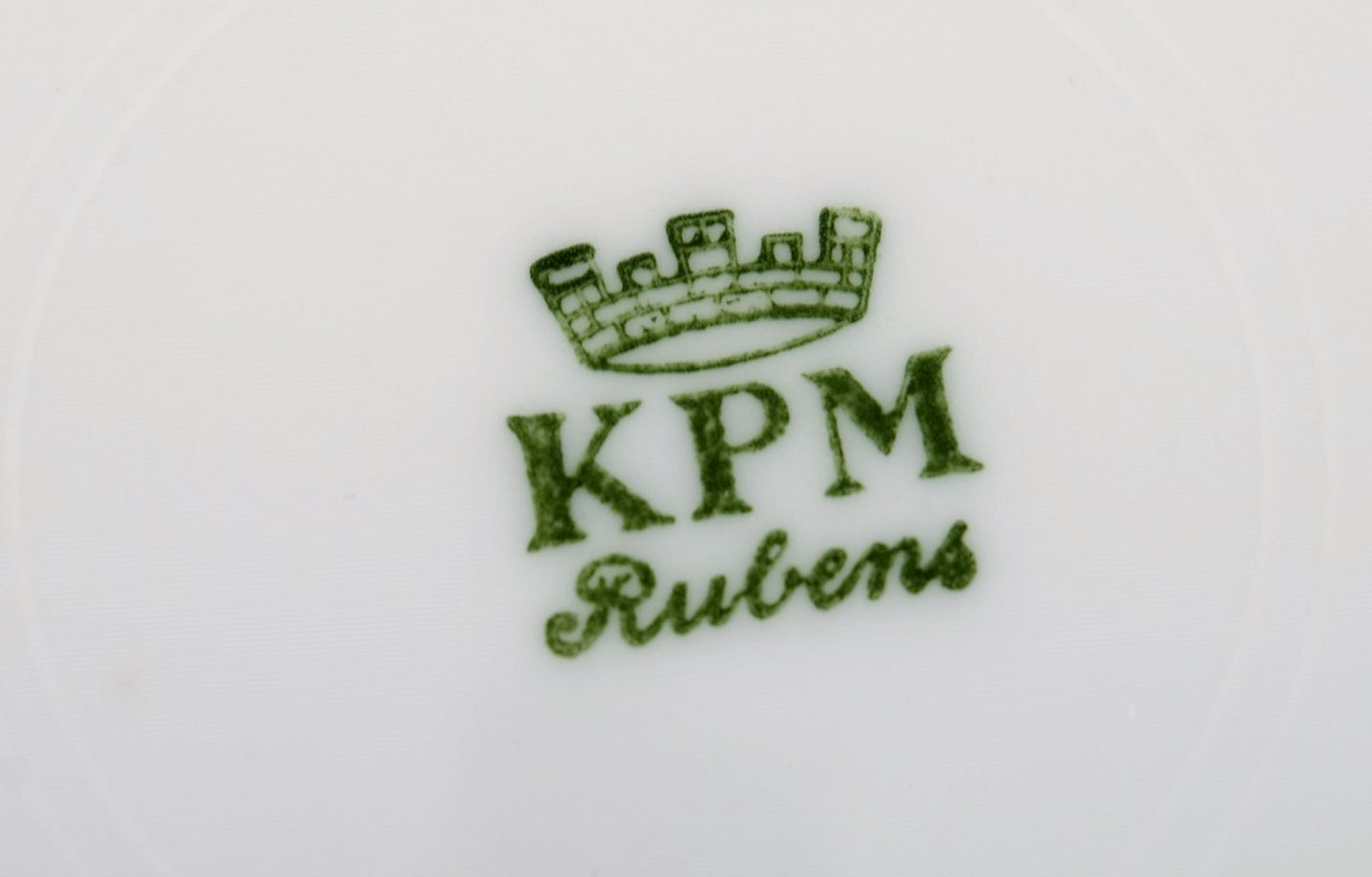 KPM, Copenhagen Porcelain Painting. 11 Rubens deep plates in porcelain with floral motifs, gold edge and scrolls in relief. 1940's.