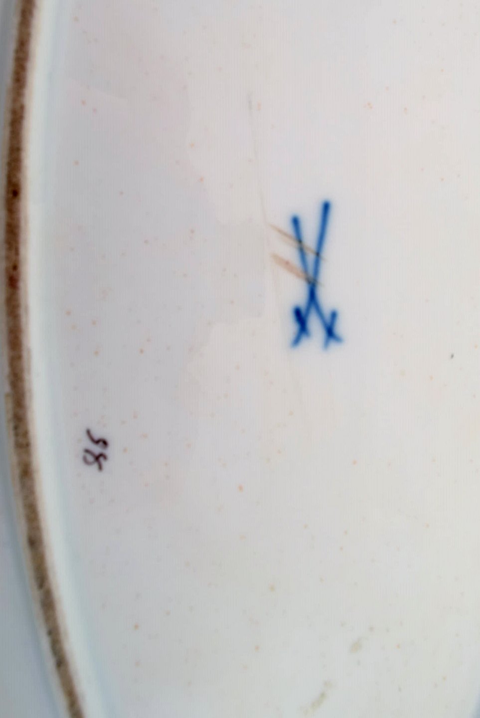 Kolossalt antikt Meissen serveringsfad i håndmalet porcelæn med lyserøde roser. Tidligt 1900-tallet.