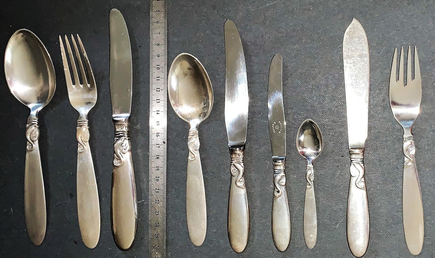 Delfin bestik i sølv. Frigast.