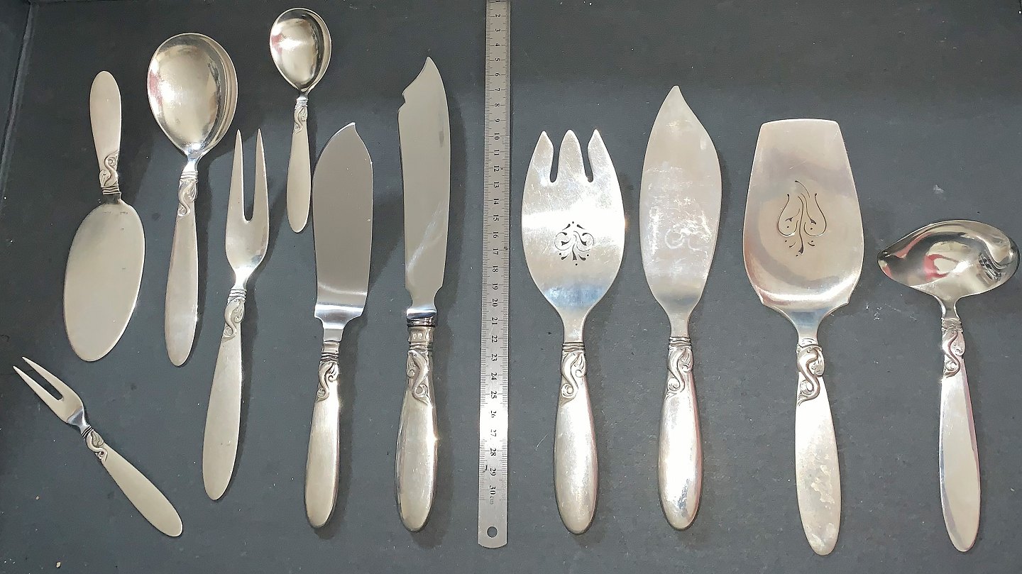 Vi et stort udvalg af serveringsdele og andre specielle dele i Delfin sølvbestik.