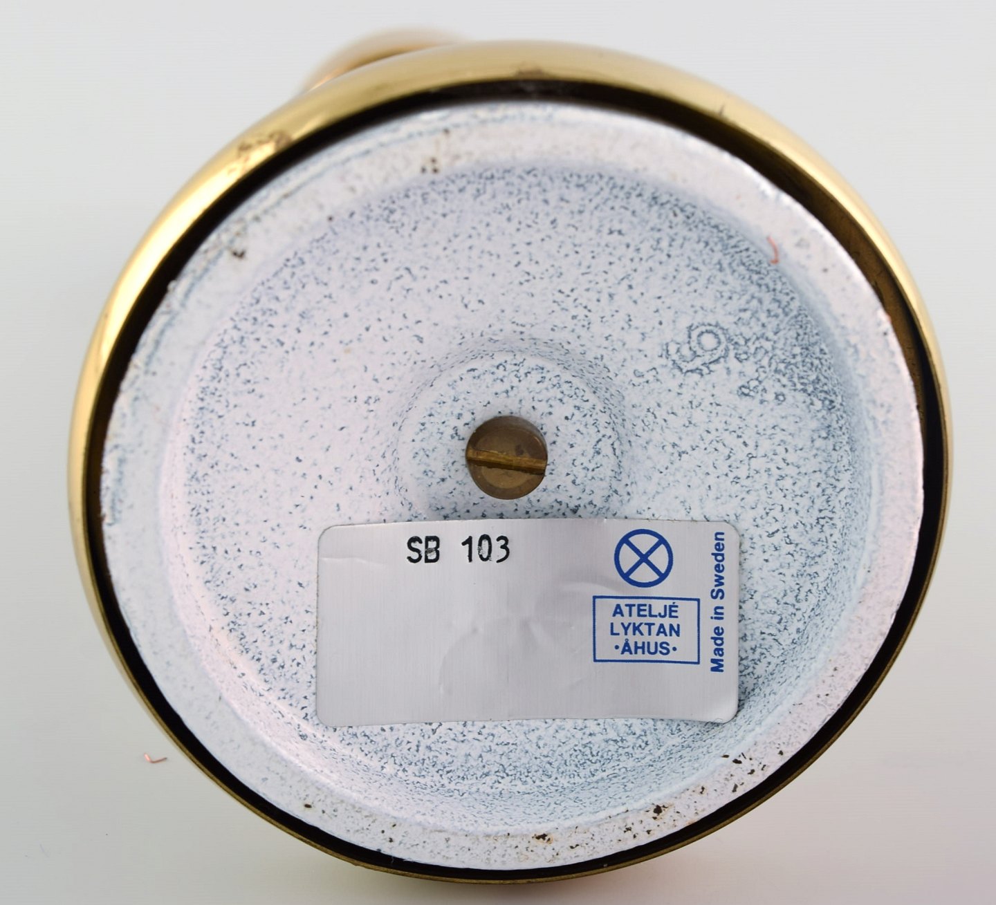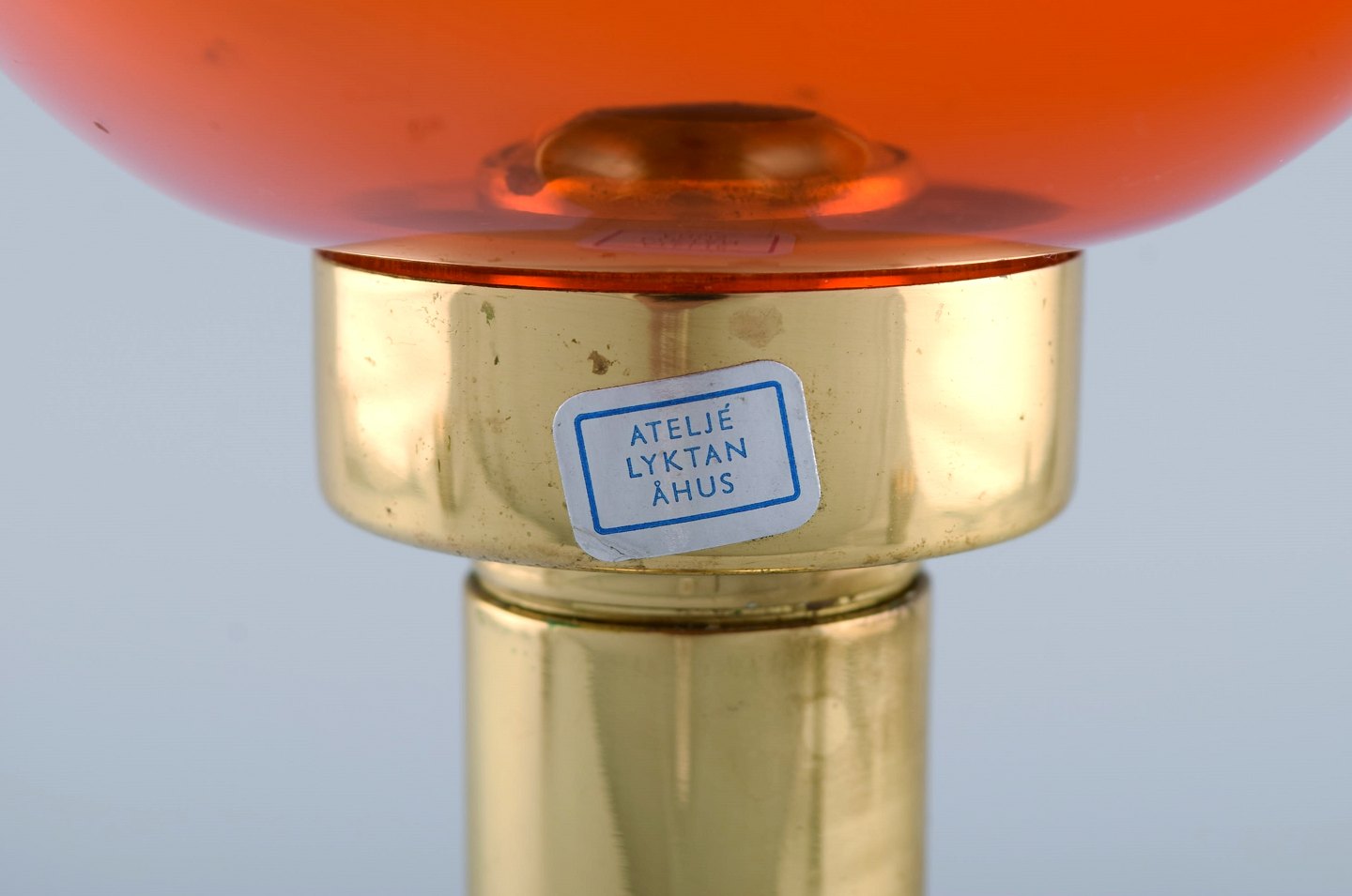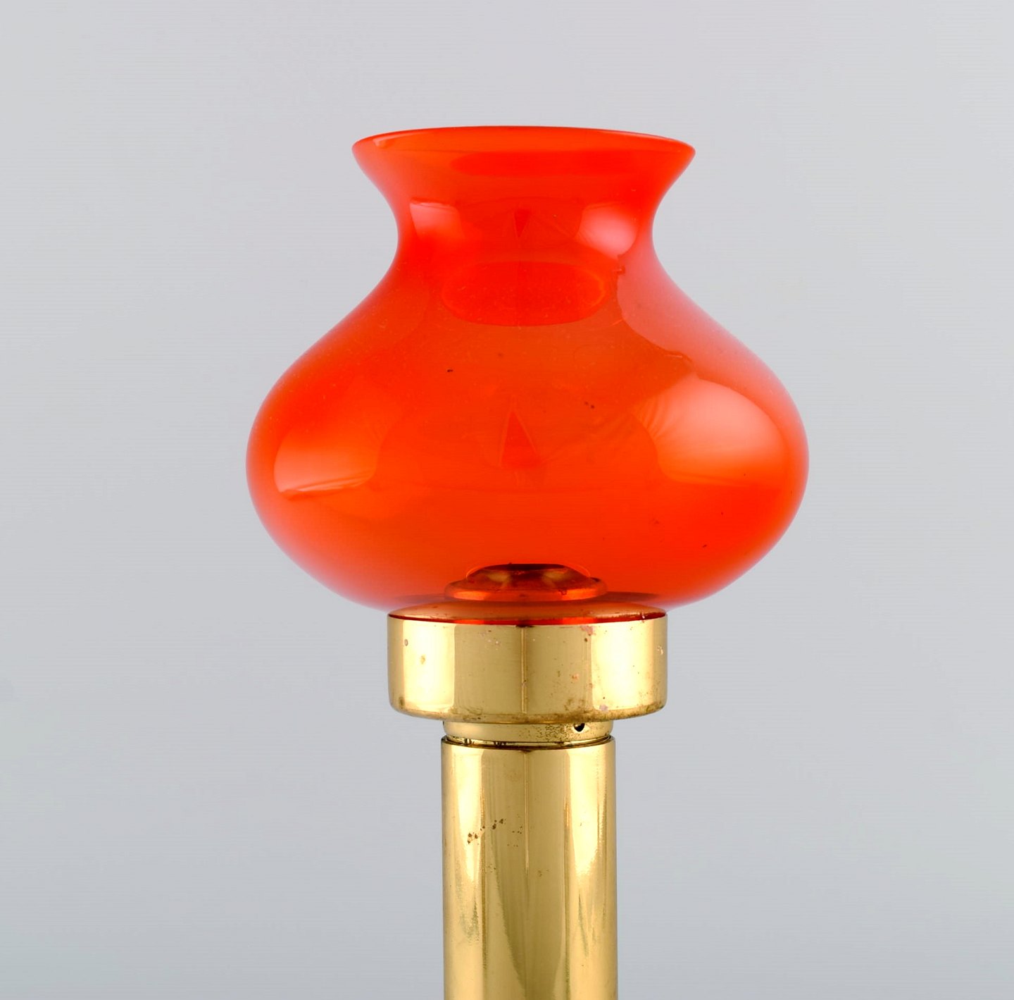 HANS-AGNE JAKOBSSON for A / B MARKARYD. Oil lamps in brass and red art glass. 1960 / 70's.