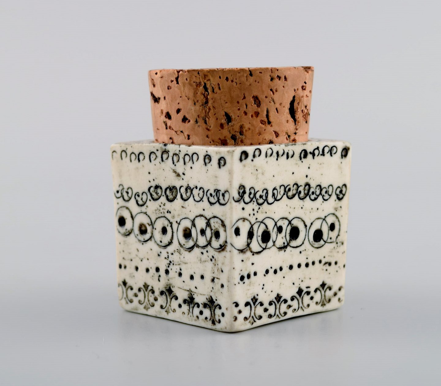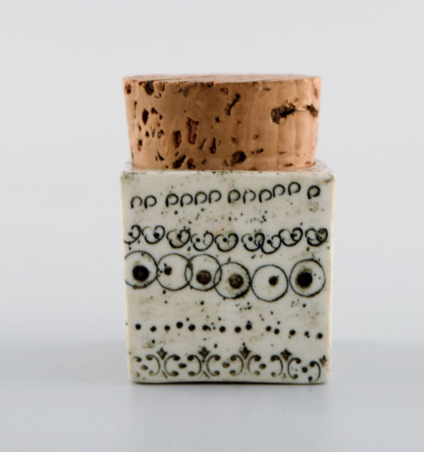 Linnea Rut Bryk (1916-1999), Finland. Sjælden unika krukke i glaseret stentøj med korkprop. 1950'erne.
