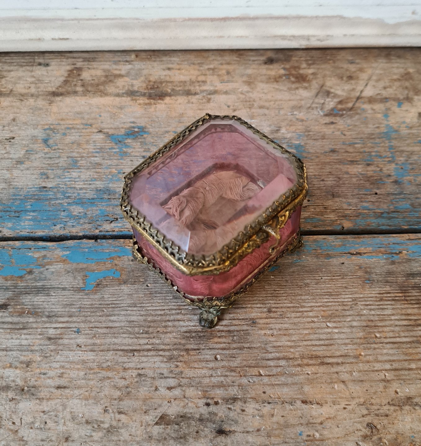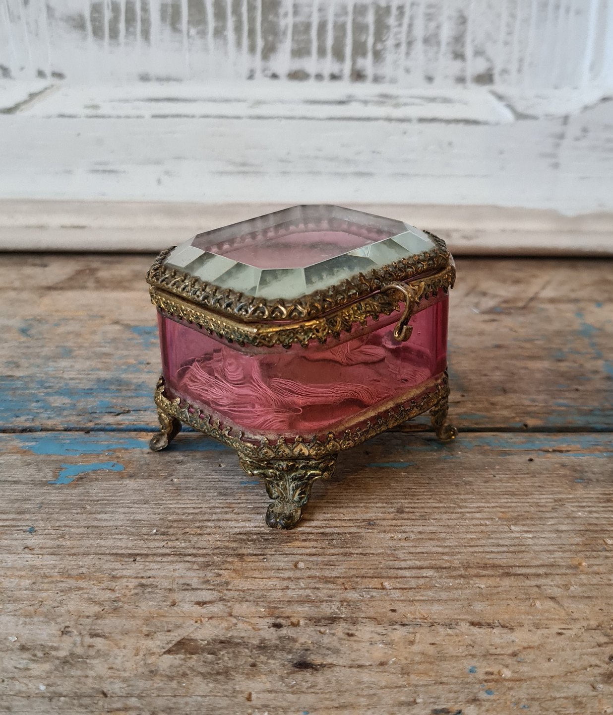 Smukt 1800 tals ottekantet franskskrin i hindbærfarvet glas