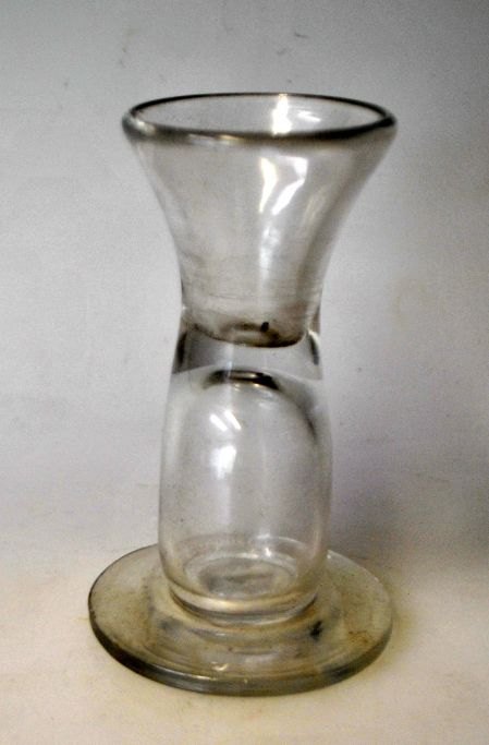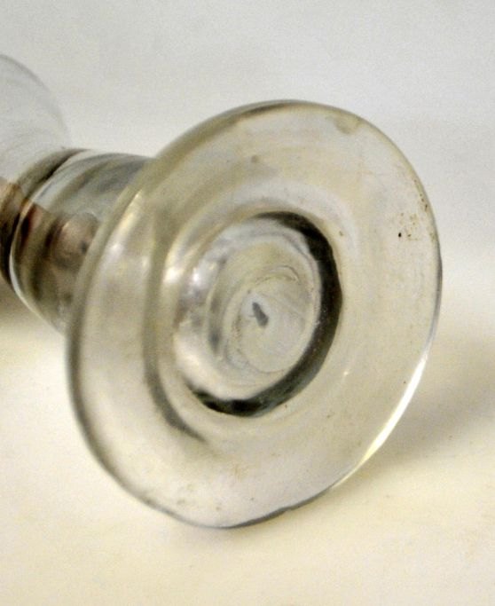 Snapse glas - frimurer glas, 1800-tallet. Lys glasmasse med trompetformet bæger, luftfydt stilk og kraftig let hvælvet fod. H.: 10 cm. Dia. fod: 6 cm.