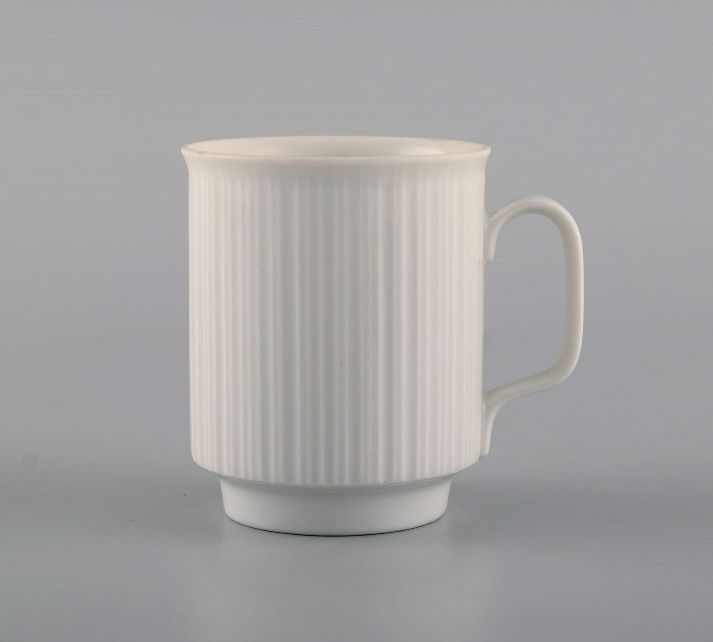 Tapio Wirkkala for Rosenthal. Four porcelain noire mocha cups with saucers in black and white fluted porcelain. Designed in 1962.
