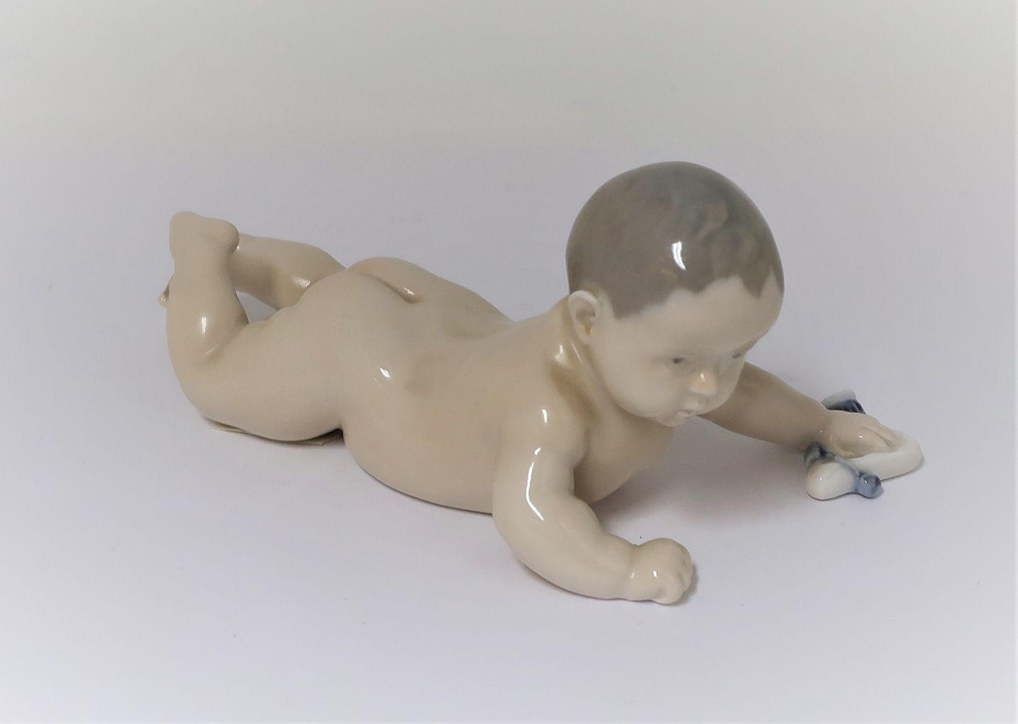 Royal Copenhagen. Liggende baby. Model 1739. Længde 15 cm. (1 sortering)