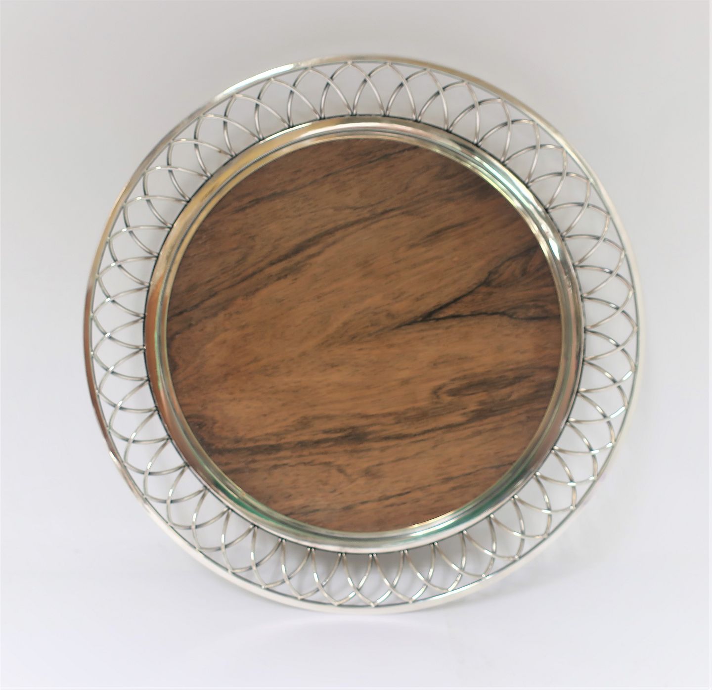 A. F. Rasmussen. Sterling (925). Round tray with wooden base. Diameter 33 cm.