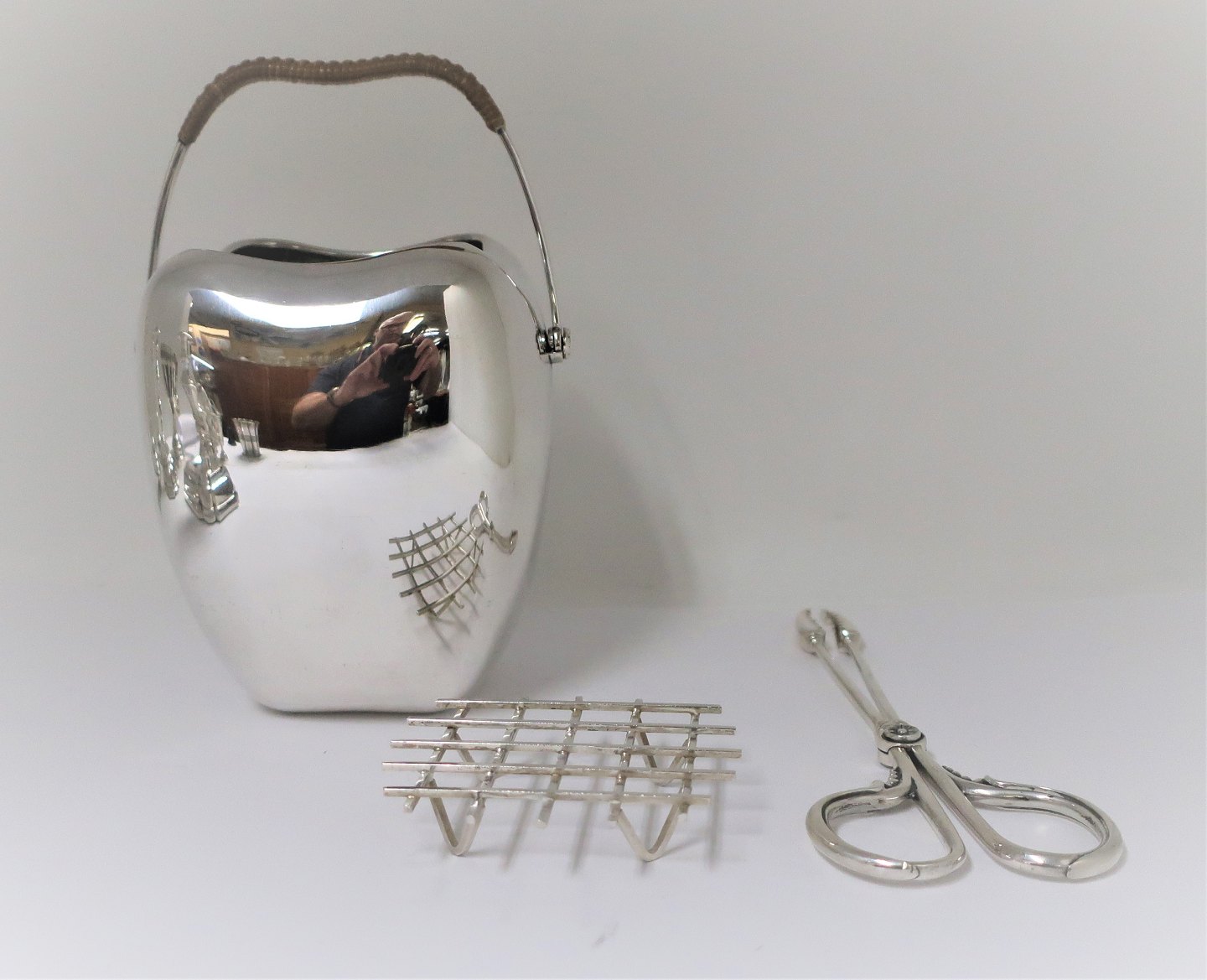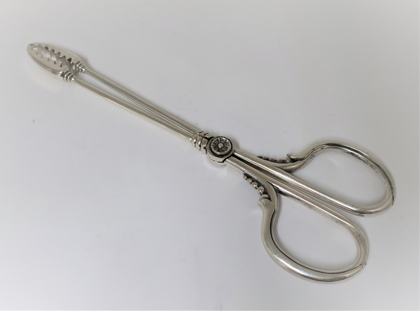 C.C. Hermann. Sølv Isspand med rist & istang. Sterling (925). Højde på isspand 14 cm uden hank. Længde på istang 21 cm.