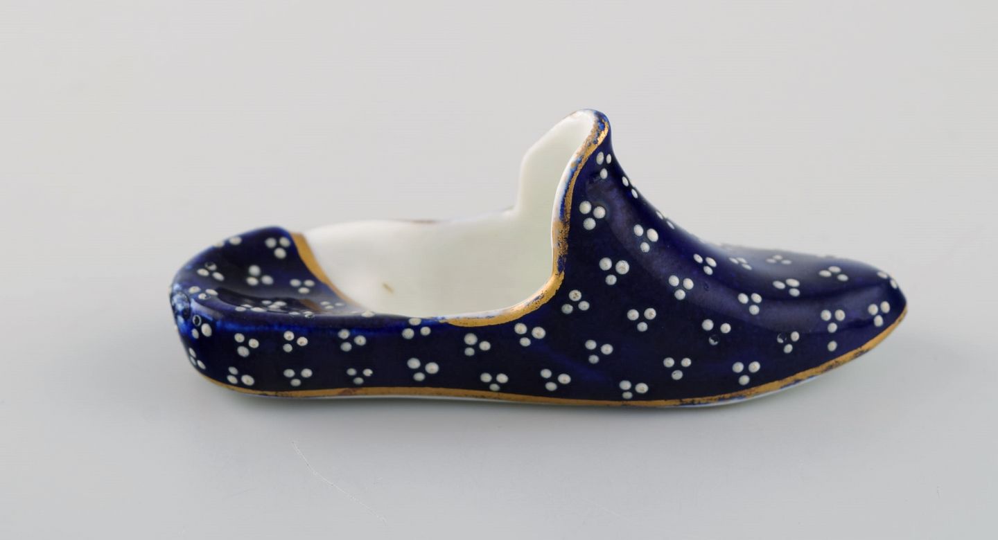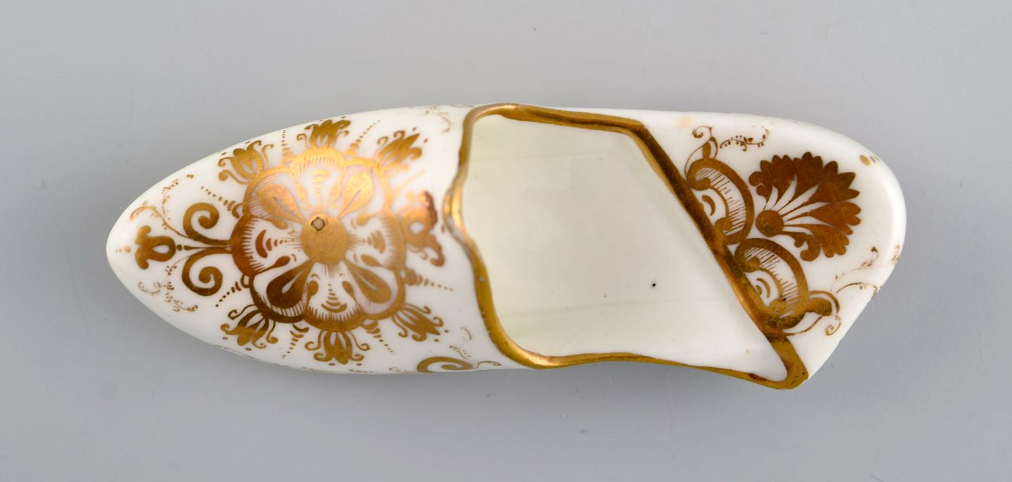Tre antikke Meissen slippere i håndmalet porcelæn. 1800-tallet.