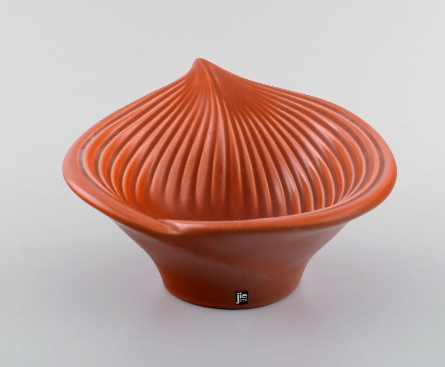 Jie, Sverige. Retro skål i glaseret keramik. Smuk glasur i mørke orange toner. 1980'erne.