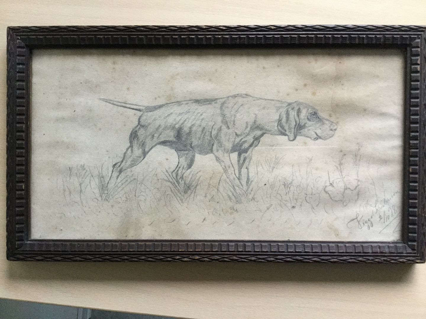 Text available in Danish: Tegning af Viggo Kristensen 1898 - Jagthund.