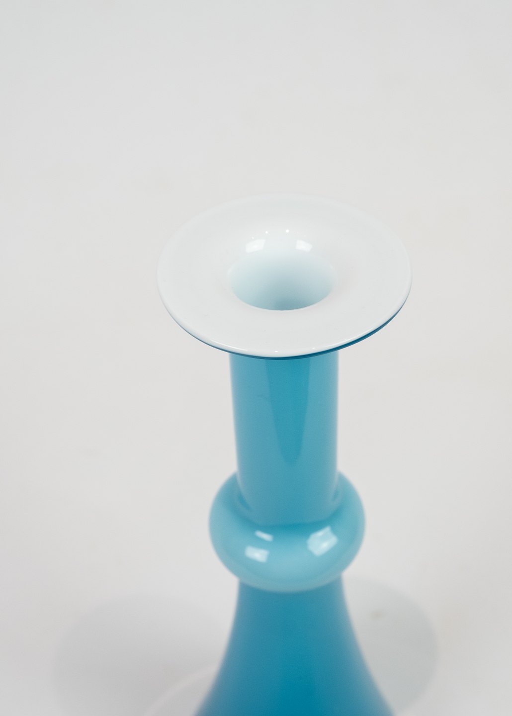 Blus glass vase with White opal glass on the insidefrom the series "Carnaby". The glass vase was designed by Christer Holmgren c. 1960 and manufactured by Holmegaard.