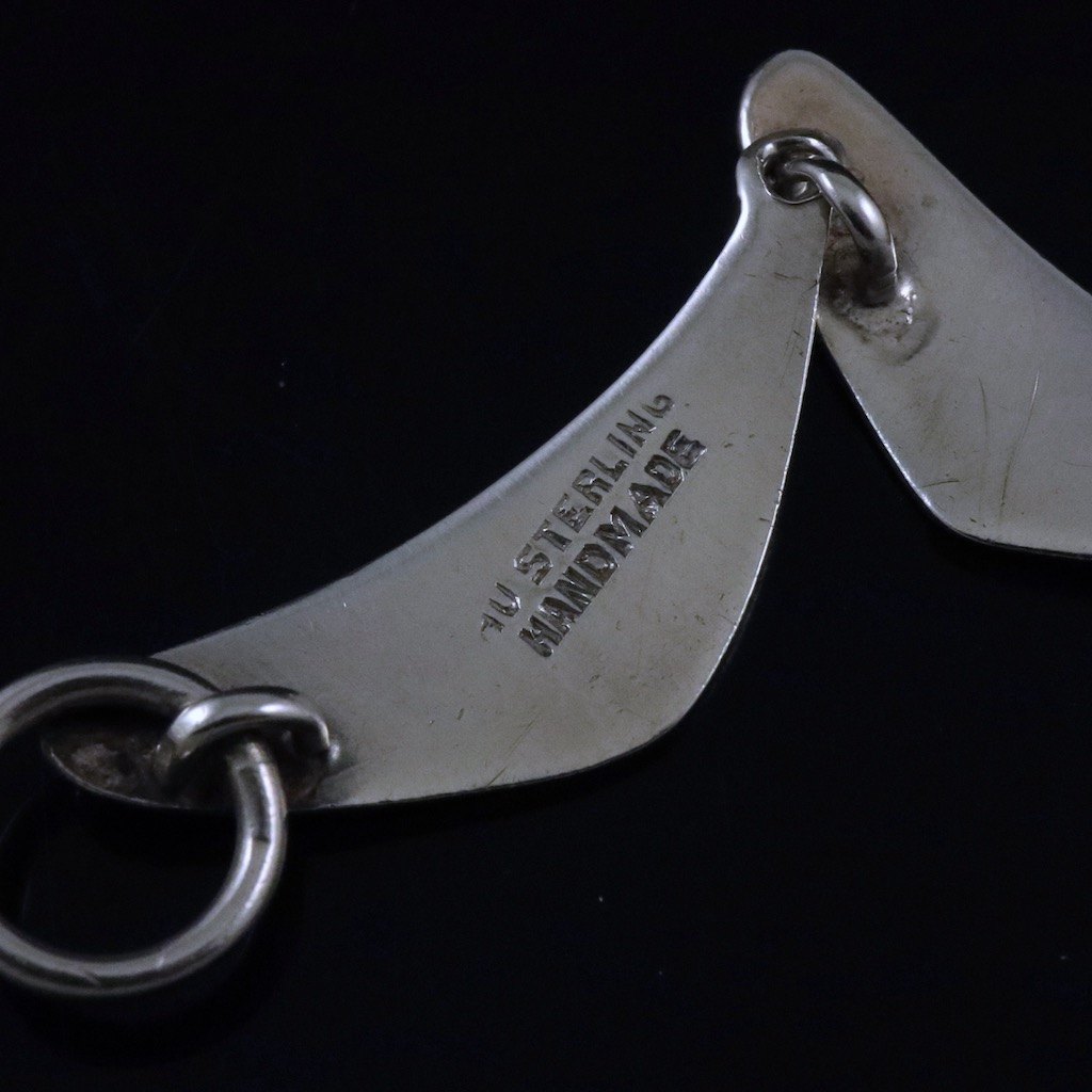 Stamped with HU, Sterling, Handmade.