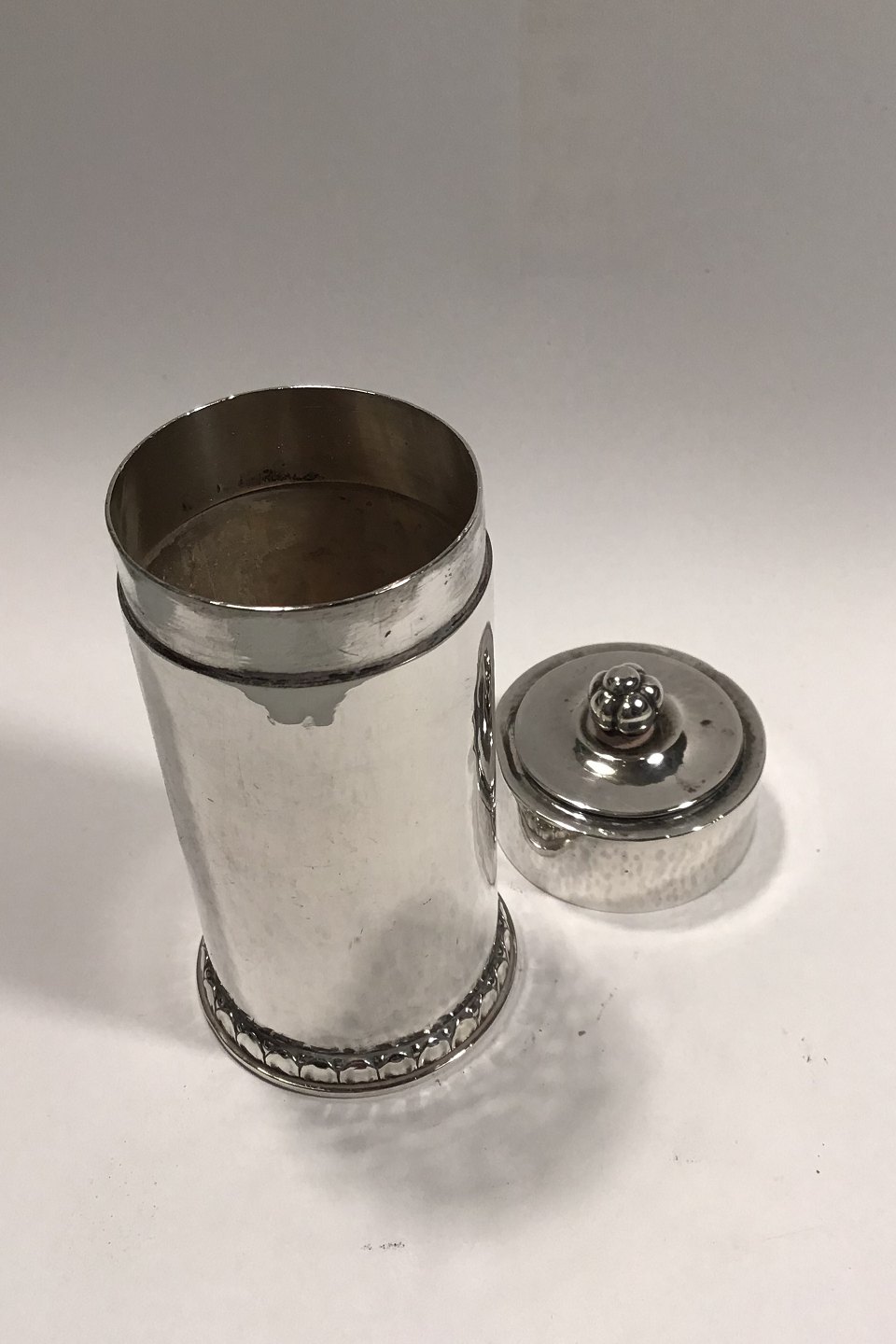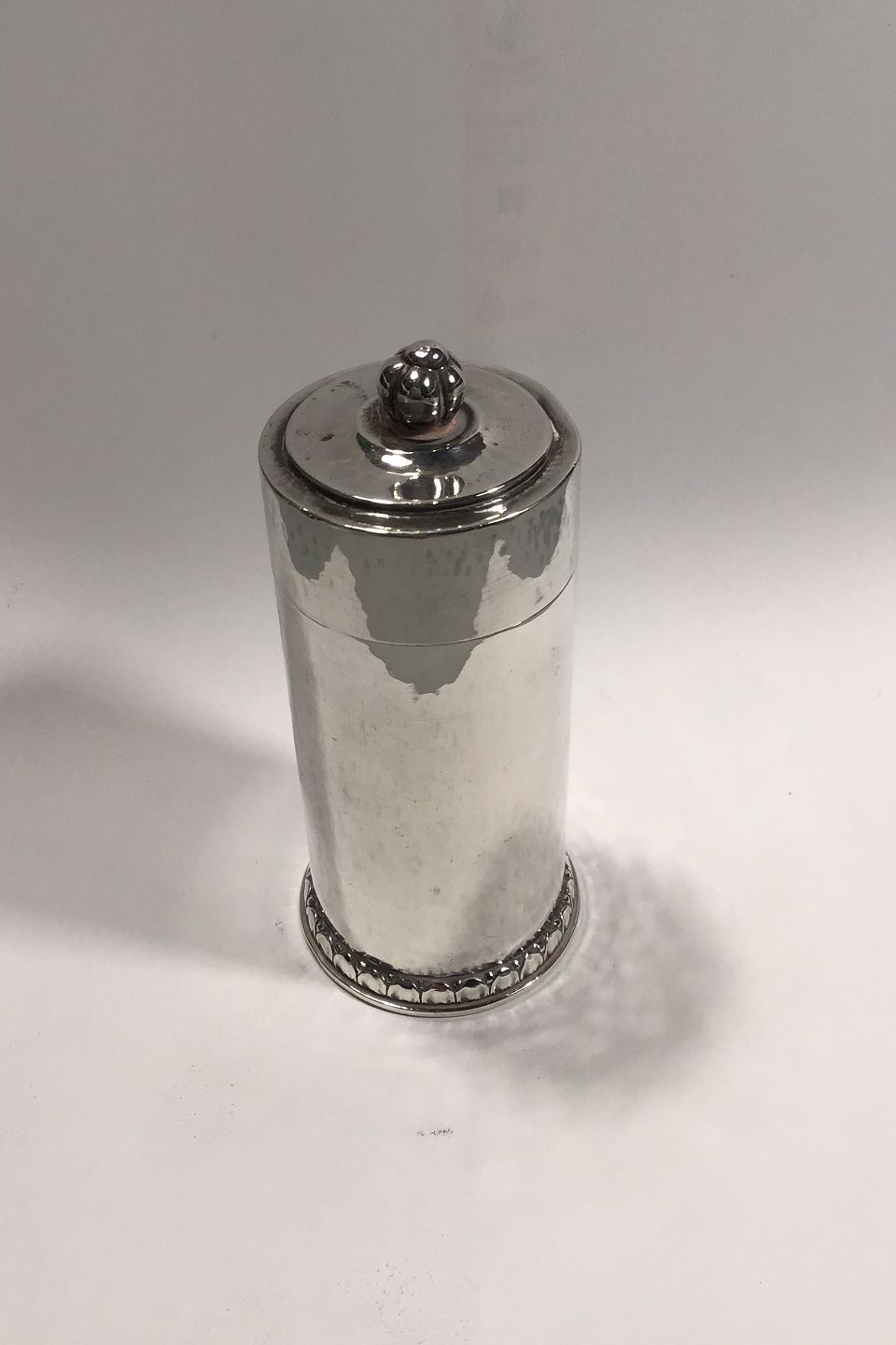 Georg Jensen Sterling Silver Cylindrical Lidded Container No 65 (1925-1933) Measures H 9.5 cm (3 47/64 in) Weight 93.1 gr/3.28 oz( Lid with dent)