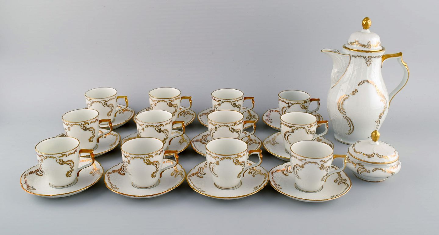 Rosenthal, Tyskland. Kaffeservice i porcelæn med gulddekoration til 12 personer med kaffekande og sukkerskål. 1900-tallet.