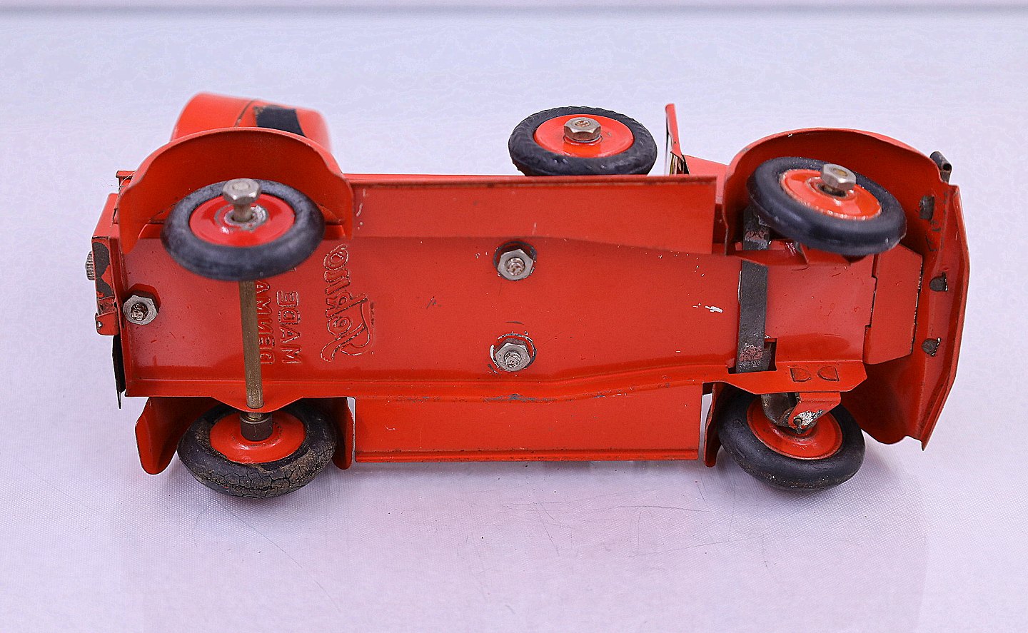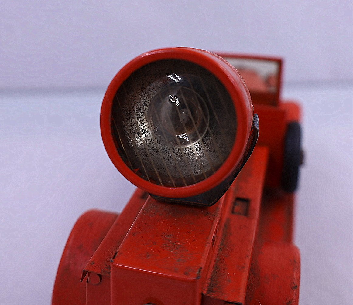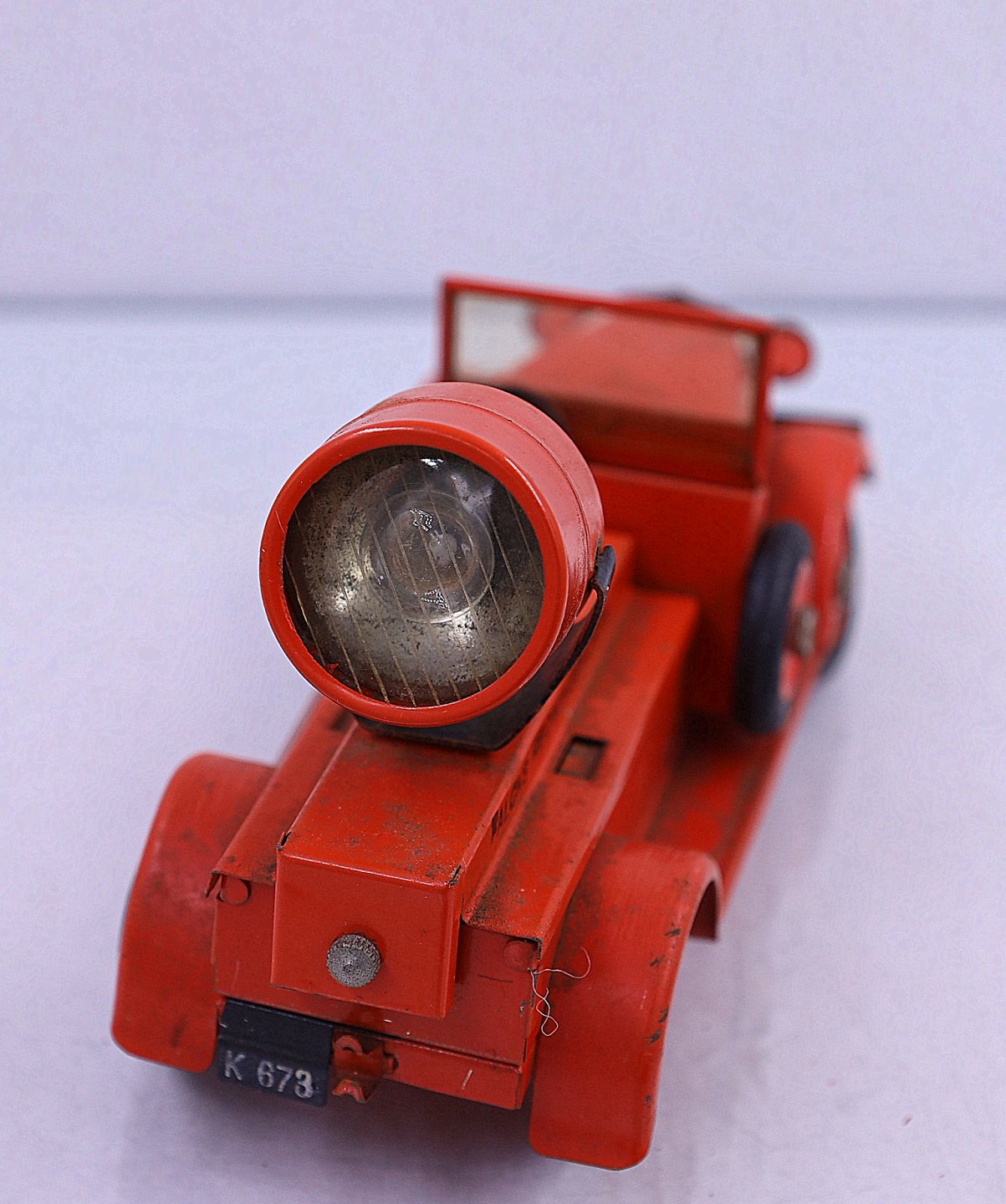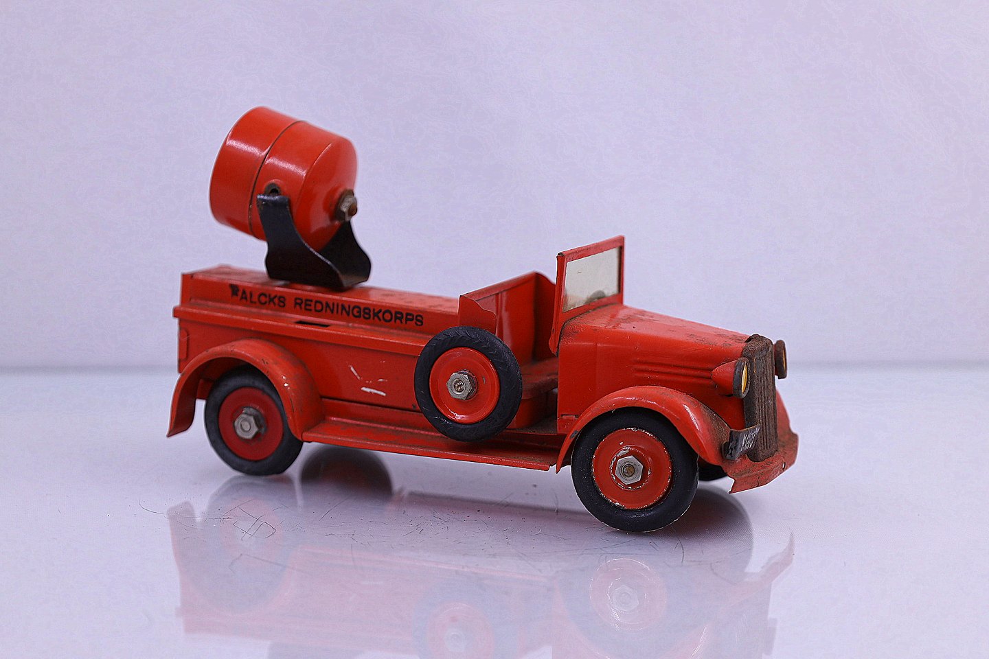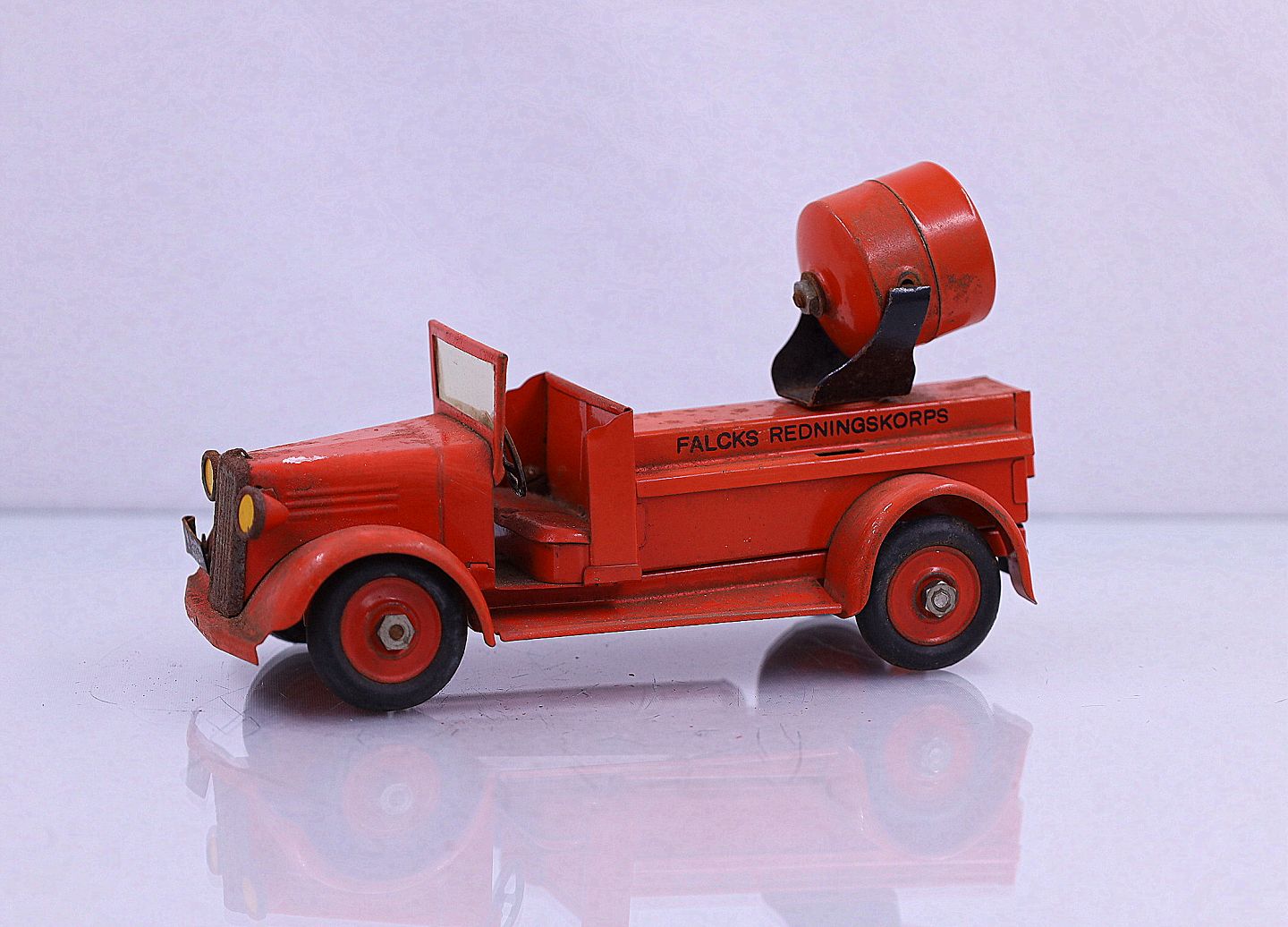 Falcks Redningskorps. Lad bil med projektør. Bilen er fra Tekno, Made in Denmark, bilen er lavet af blik. Der er slitage på bilen