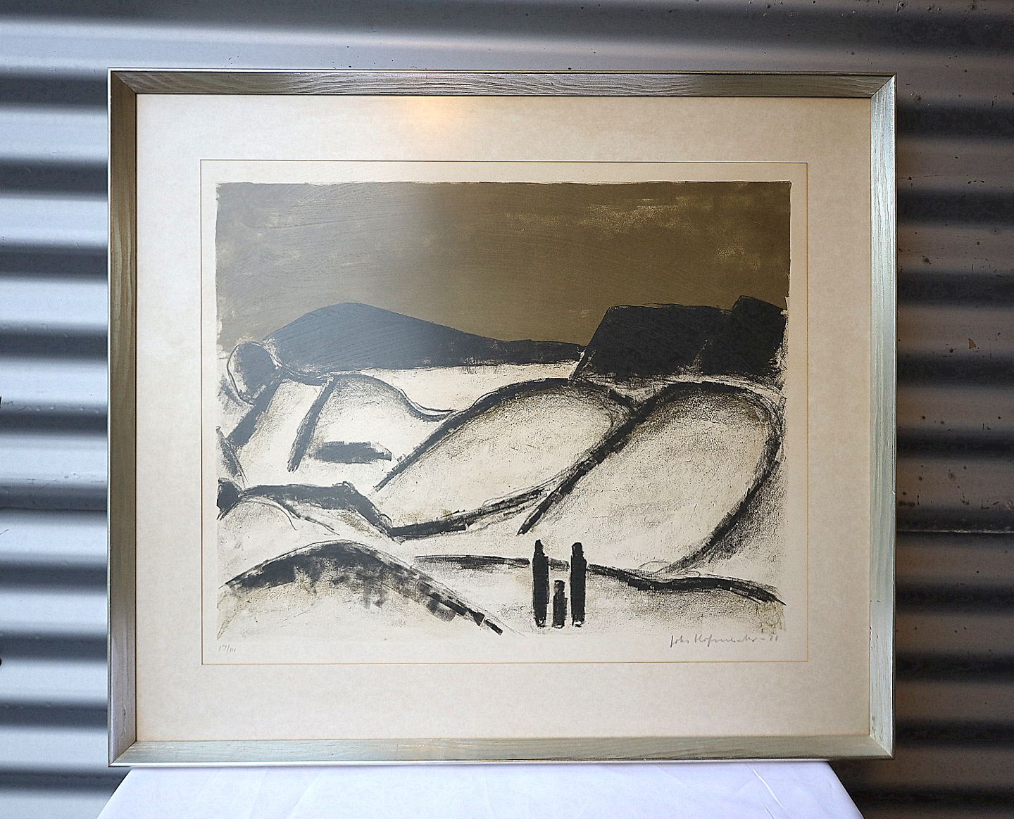 Johannes Hofmeister. Litografi nr. 17/111. mennesker der står og kigger ud over klitterne