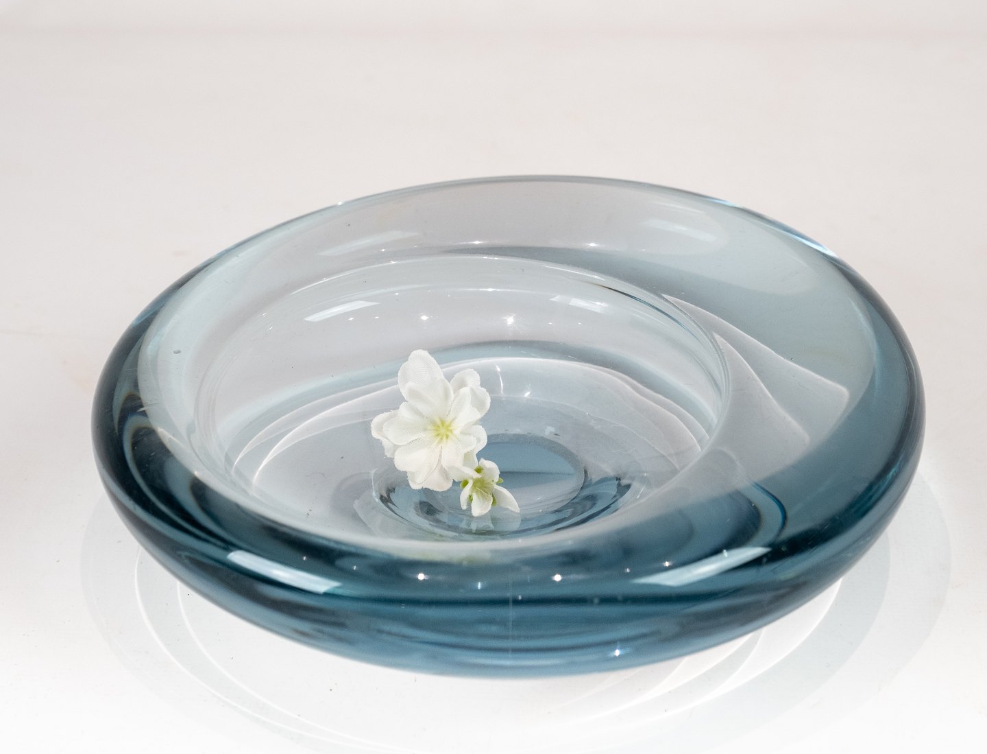 Lyseblå glas skål af Per Lütken for Holmegaard.