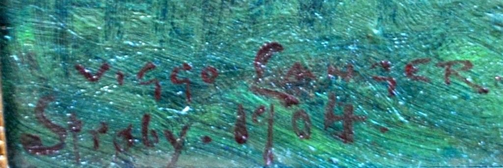Langer, Viggo (1860 - 1942) Denmark: A horse-drawn carriage by a house. Oil on canvas. Signed Strøby 1904. 62 x 83 cm.