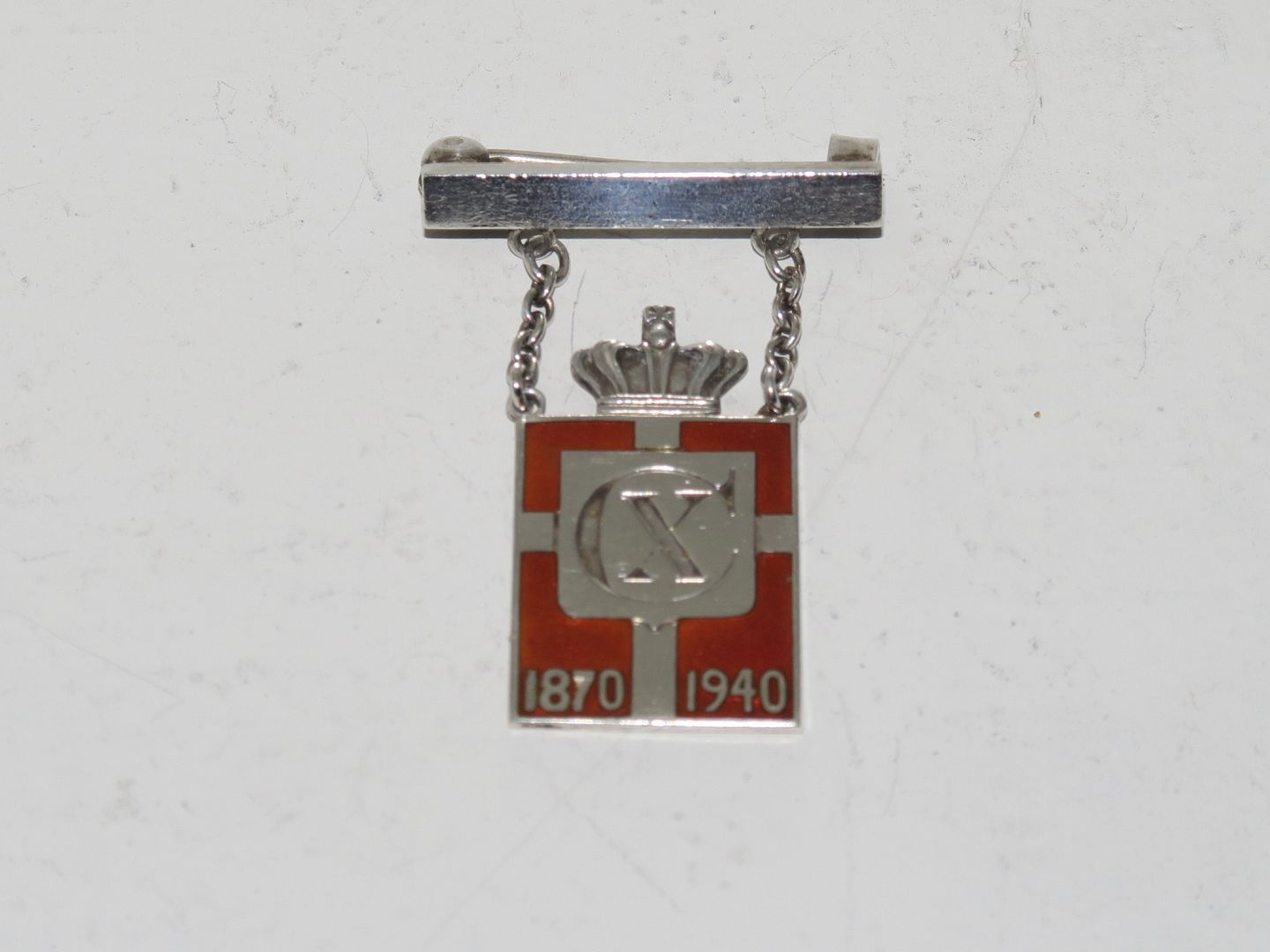 Kings Mark brooch with chain 1870-1940