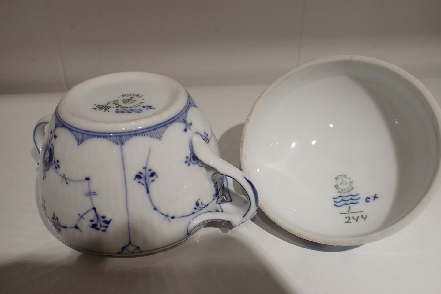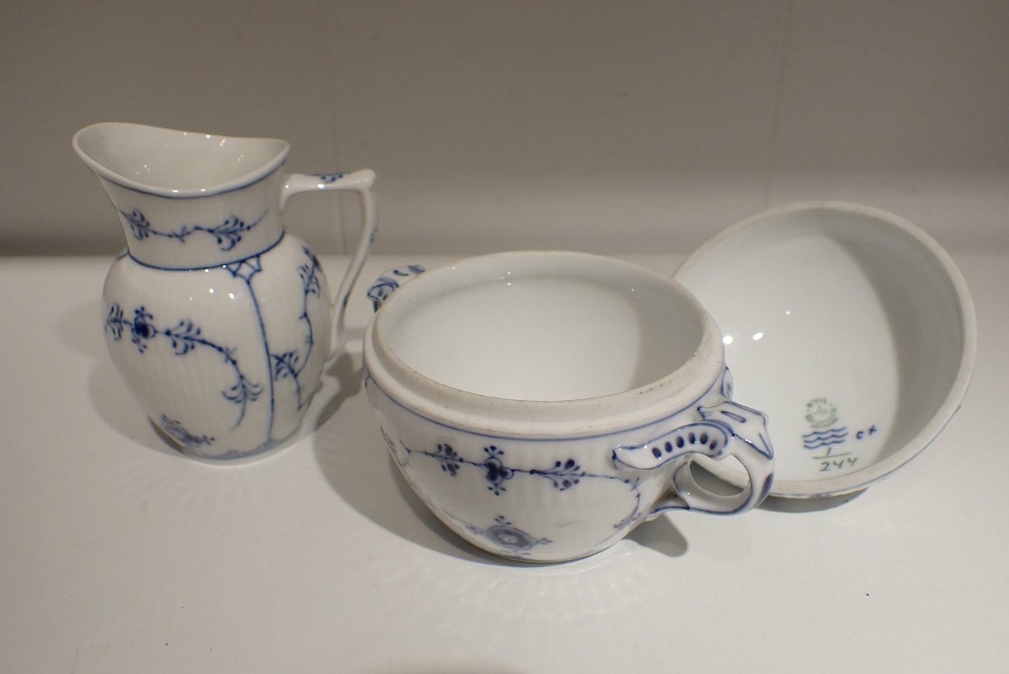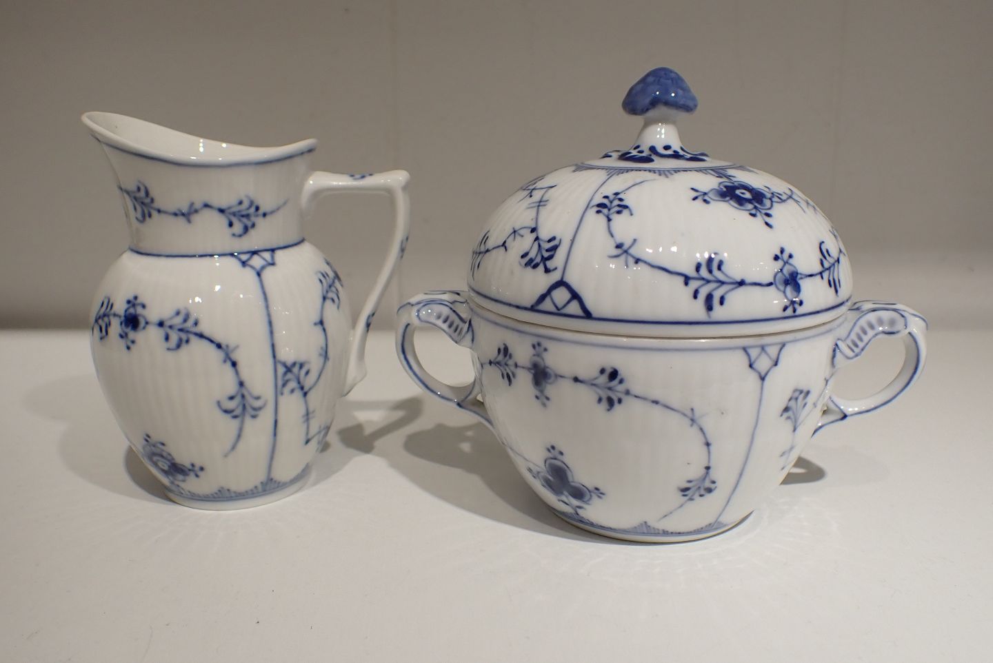 Kgl. Musselmalet riflet flødekande og sukkerskål med låg. Design