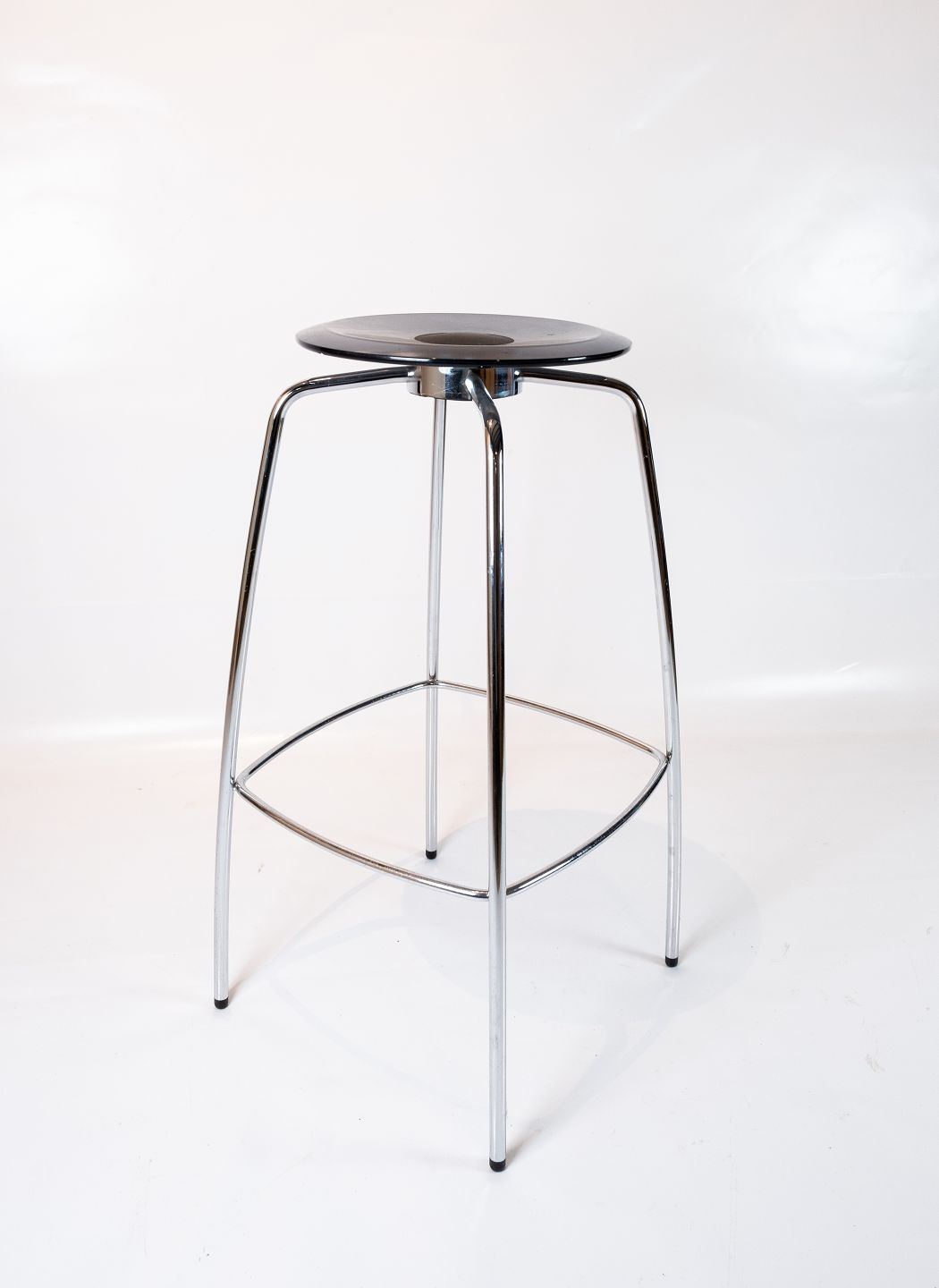 Barstol med sæde i sort plast og metalstel. Et minimalistisk, men alligevel elegant stykke møbel, perfekt til enhver moderne indretning.