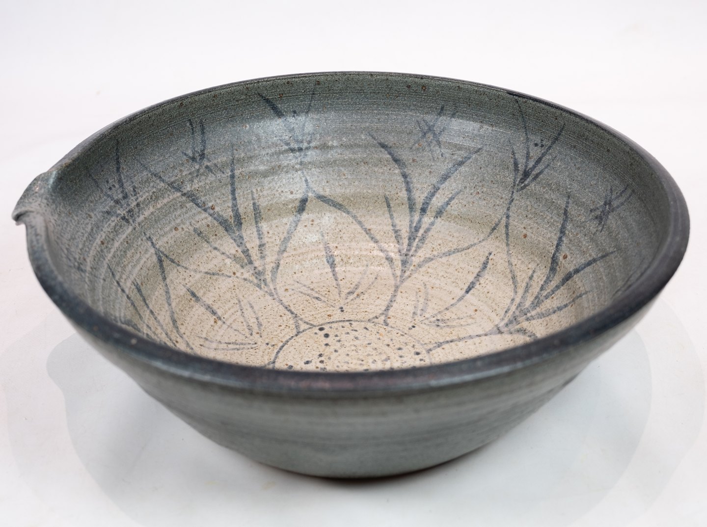 Stor grå keramik skål dekoreret med mønster indvendigt af Weiss.