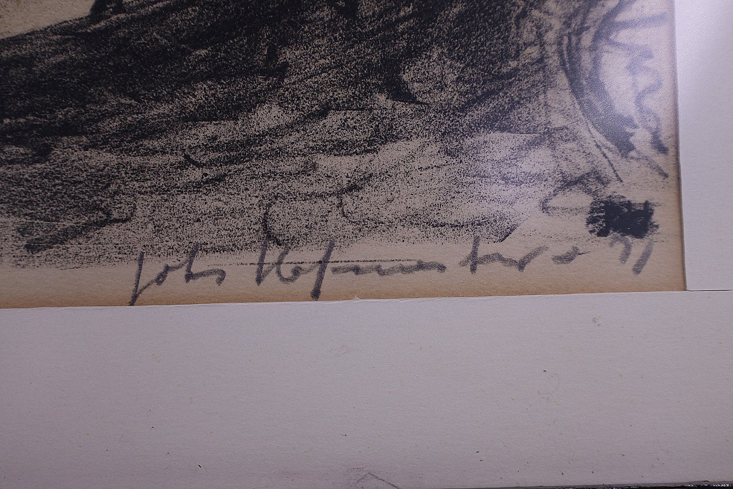 Johannes Hofmeister. Litografi, ikke nummereret. Litografiet er i sort bejdset ramme. Signeret Johs Hofmeister-71