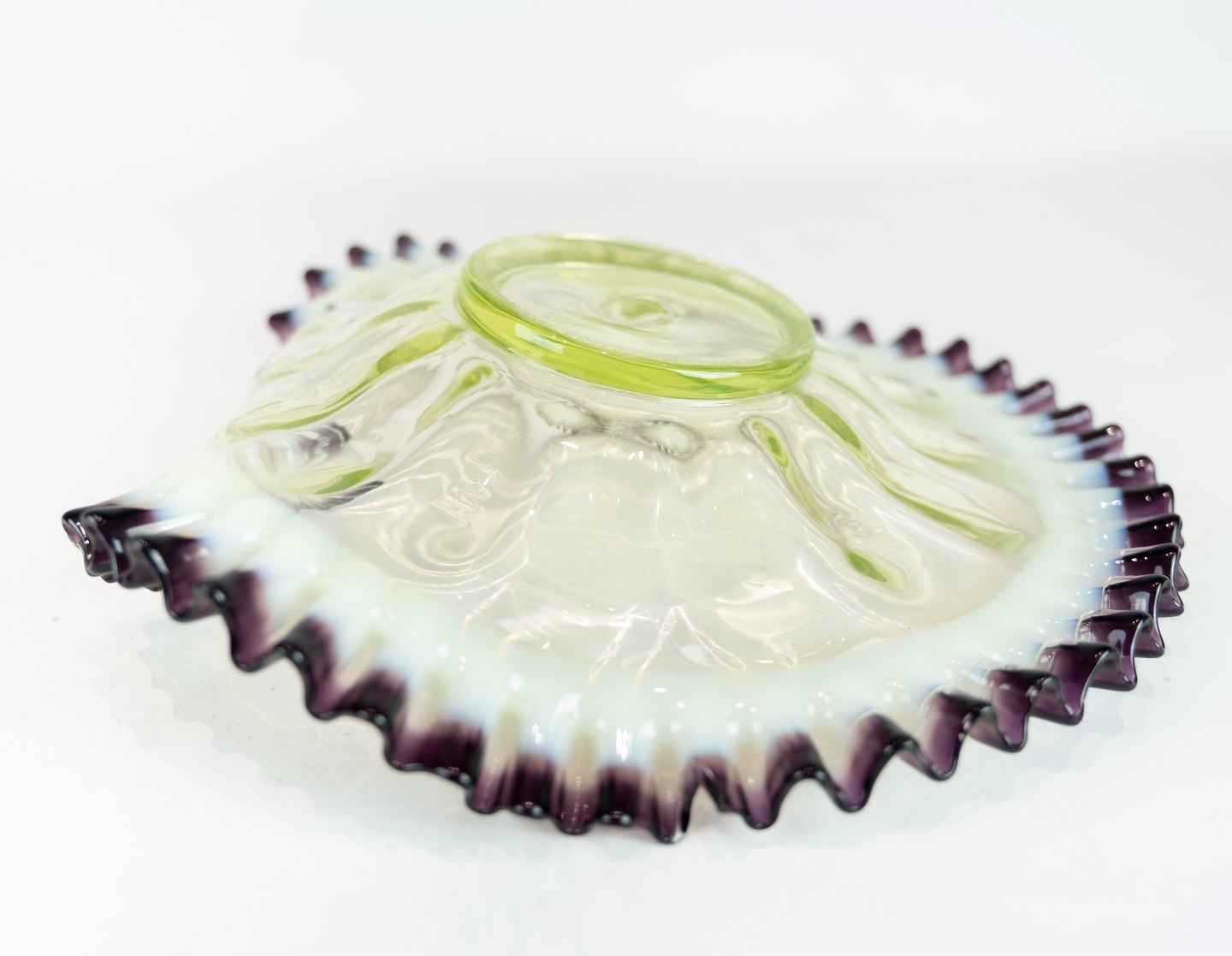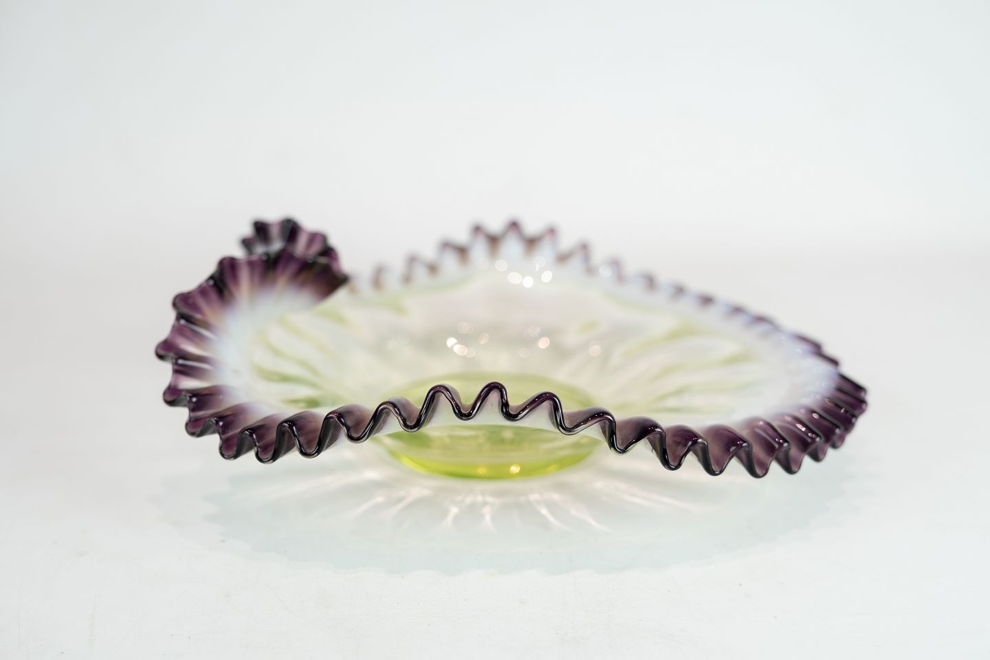 Bowl of opaline glass in great design with yellow and purple colours from the 1890s.