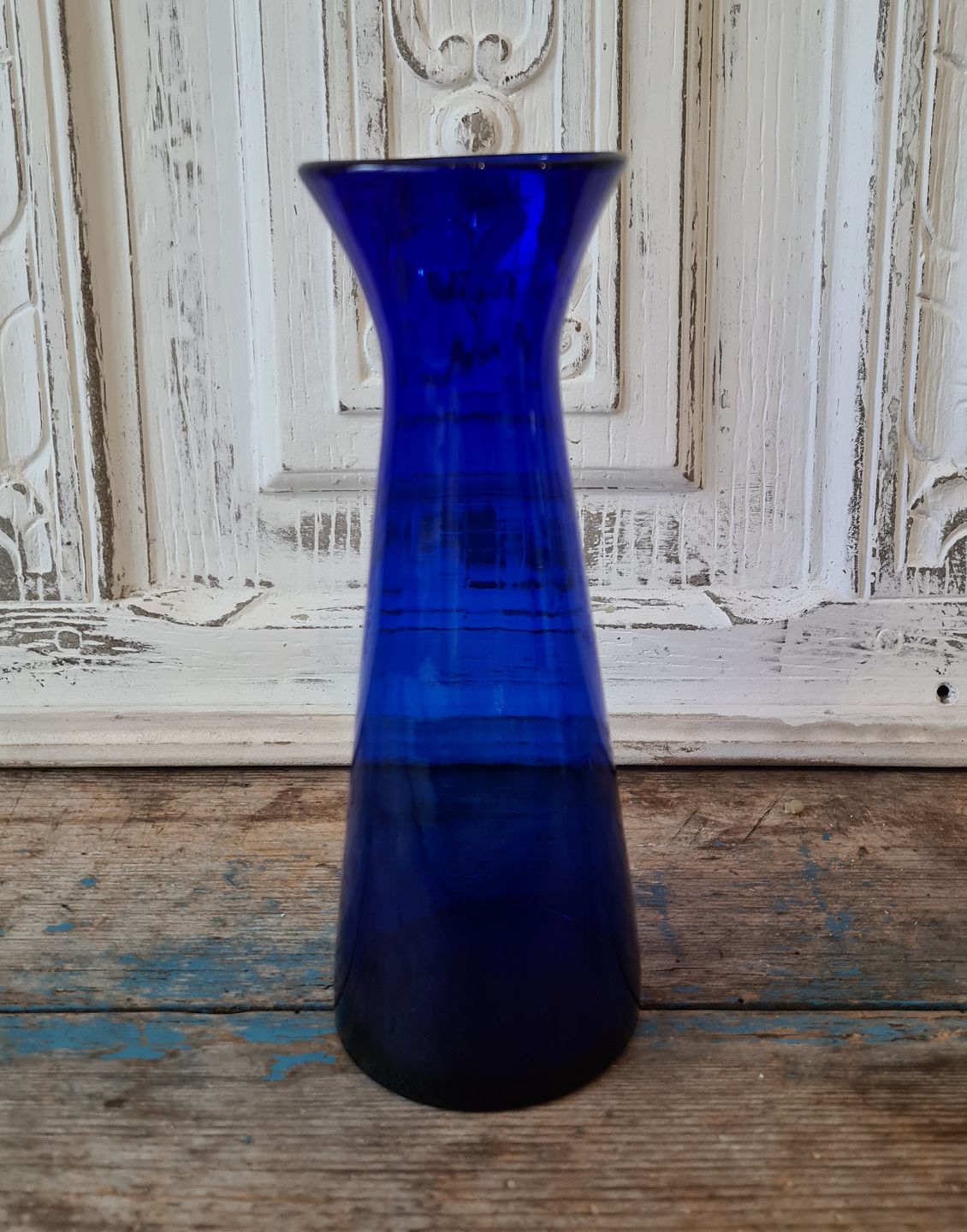 Hyacintglas af blåt optisk vredet glas