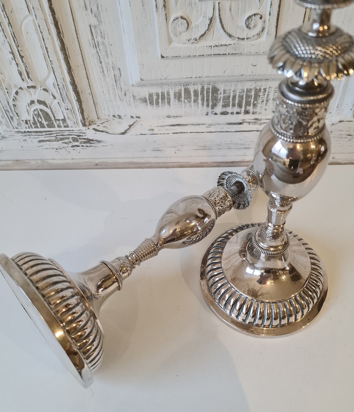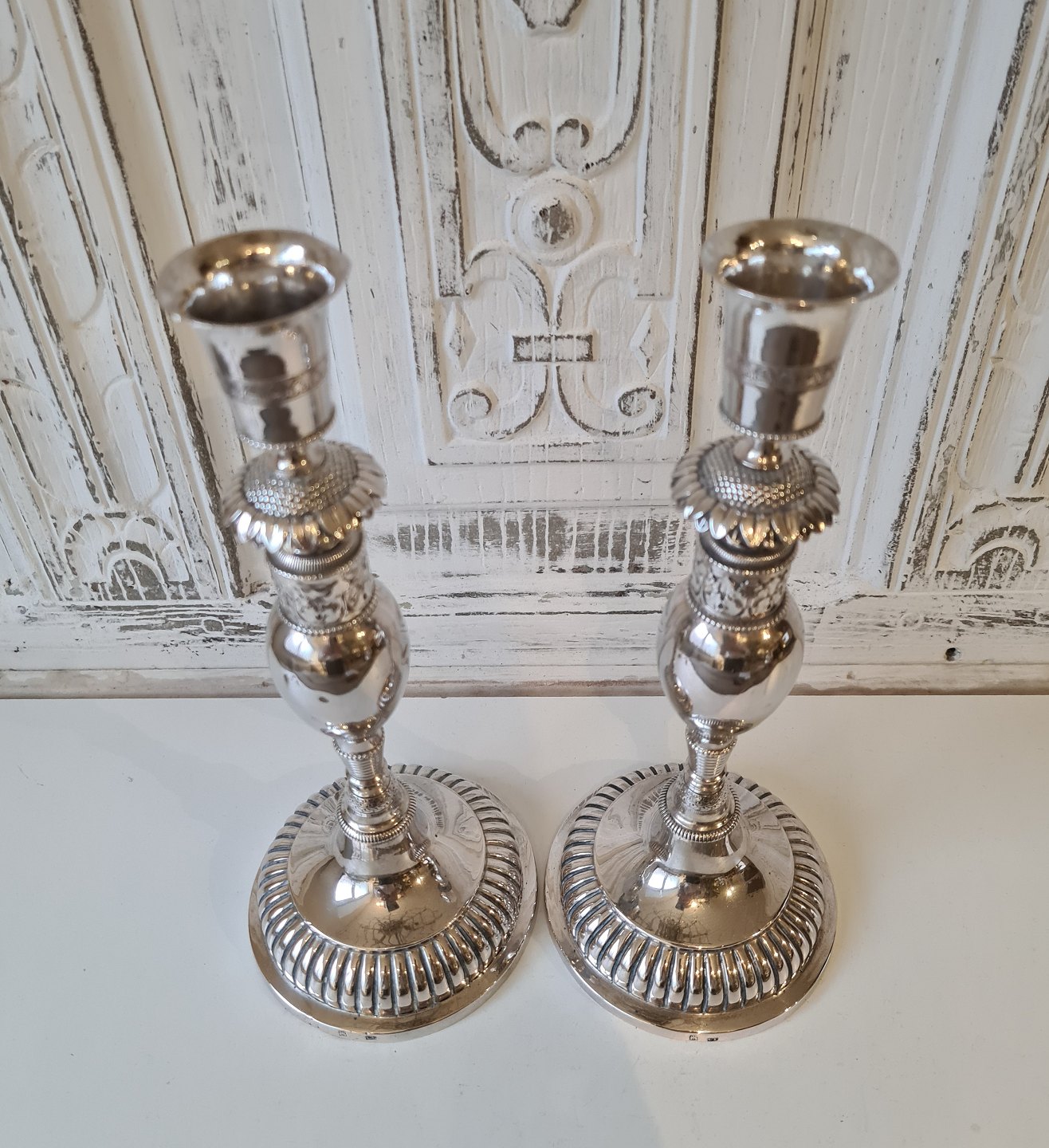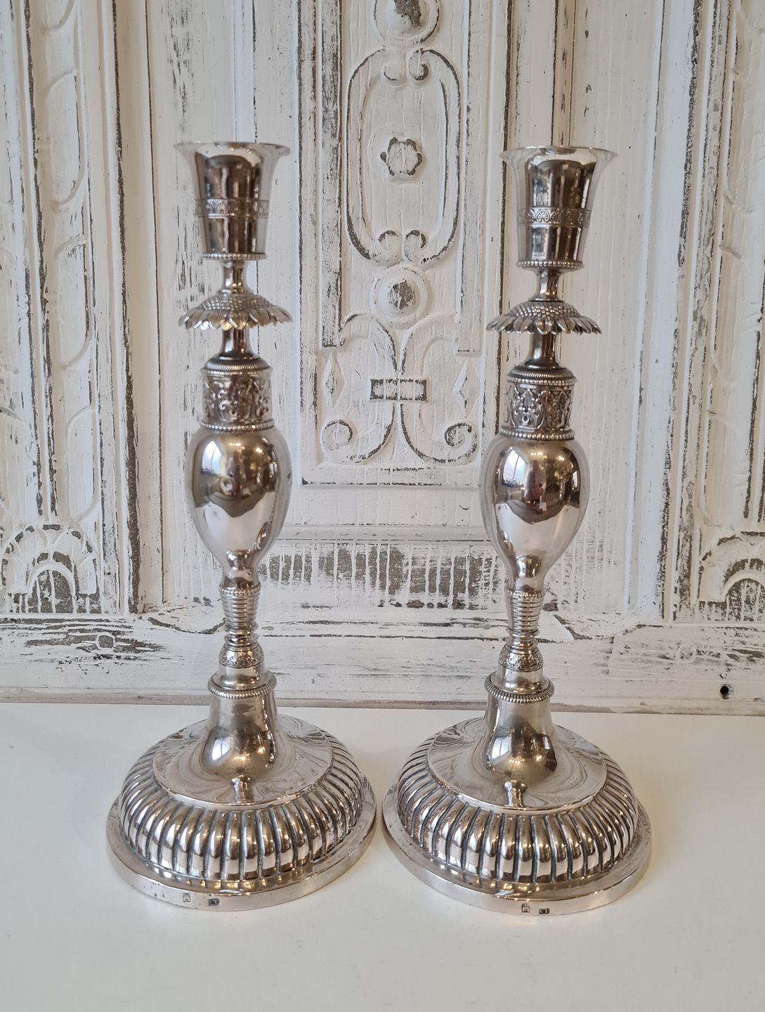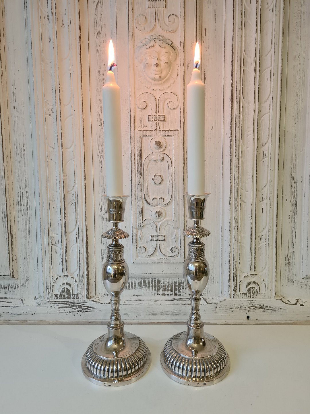 Pair of German Empire candlesticks in silver by Christian Tormählen - Altona 1822