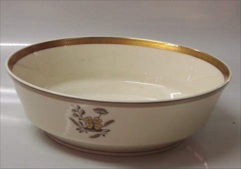 9593-947 Salad bowl, round 21,5 cm Royal Copenhagen # 947 Tableware Gold encrusted rim, Gold Clover Flowers on Cream Base called Liselund Designed by Thorkild Olsen In nice and mint condition