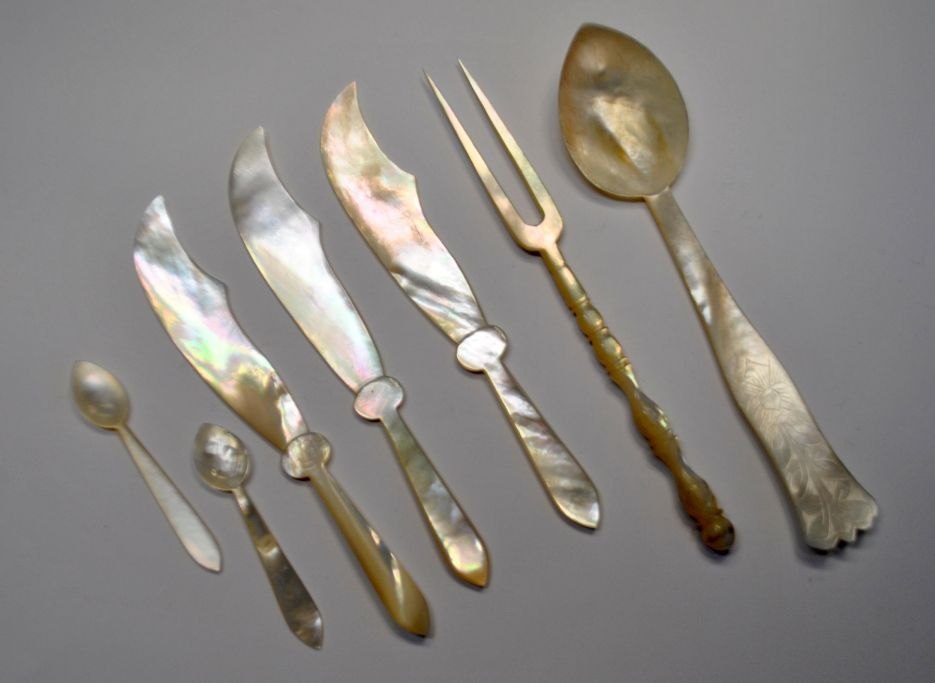 Samling af spiseredskaber i perlemor, 20. årh. Asien.