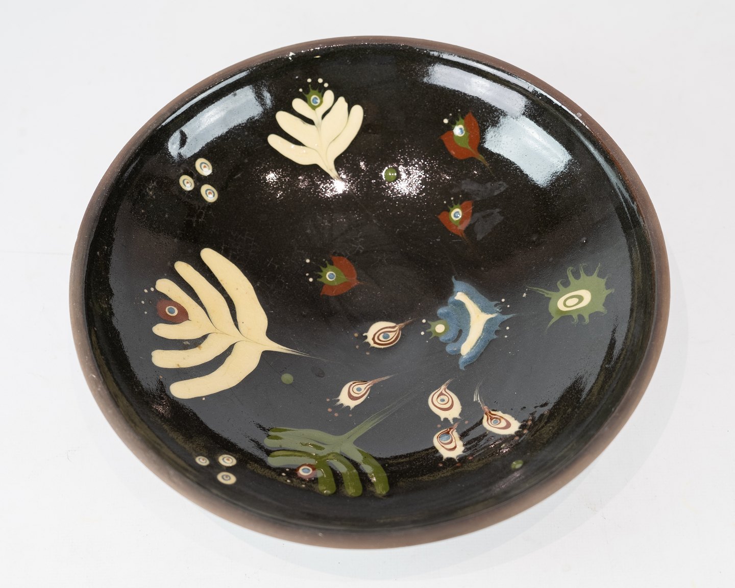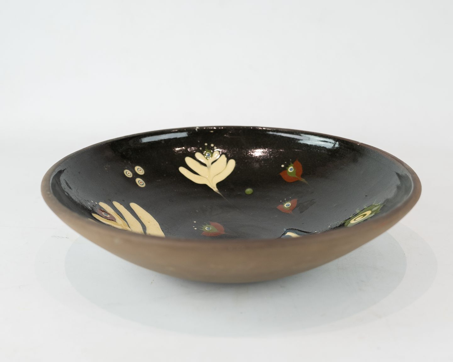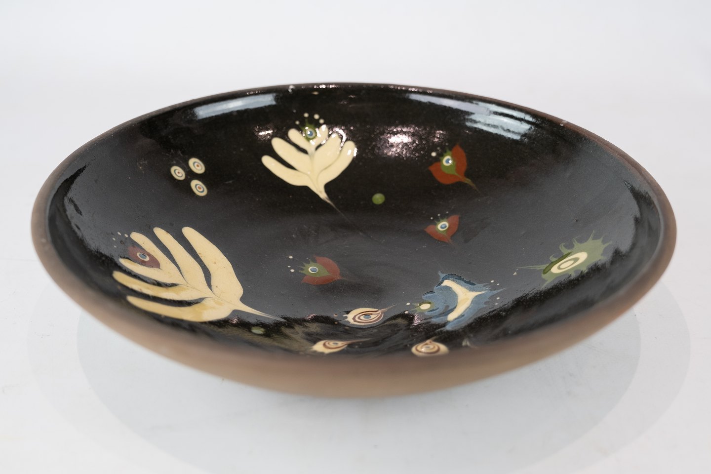 Ceramic bowl in dark colours by Ulla Sonne from 1975.
