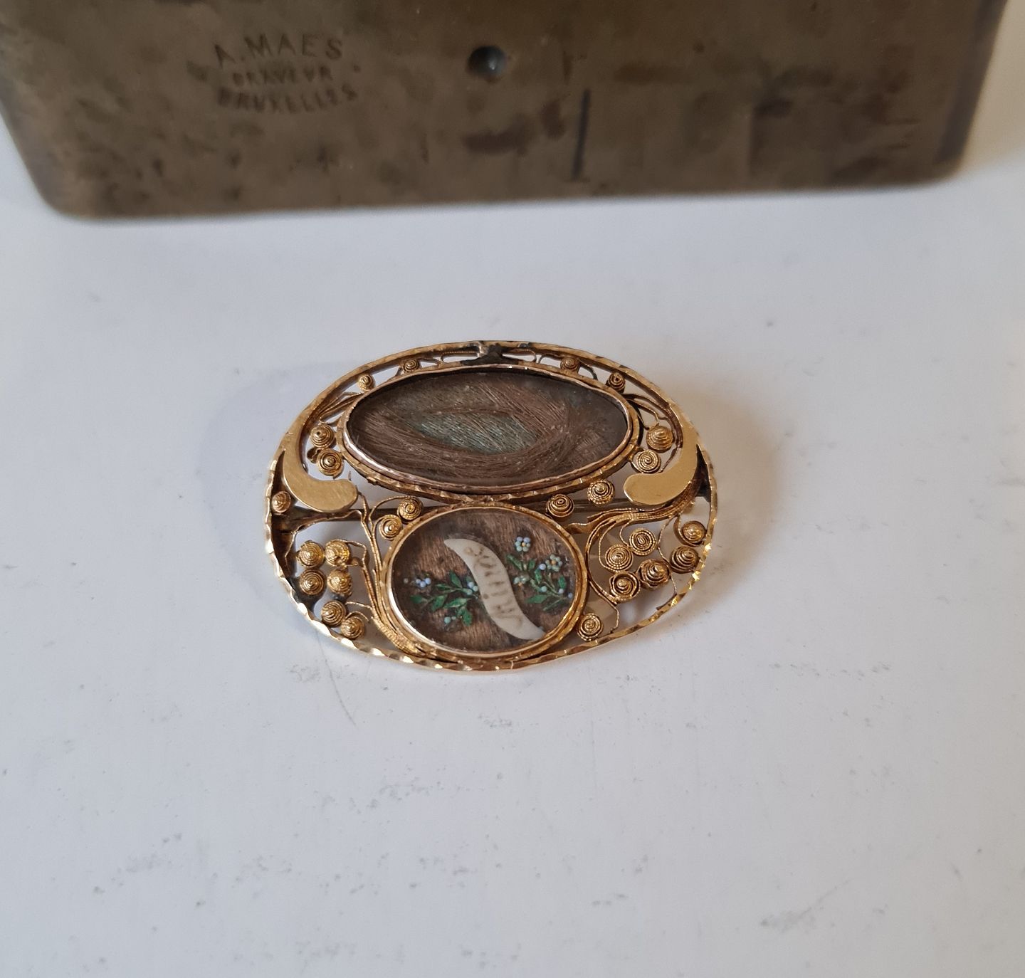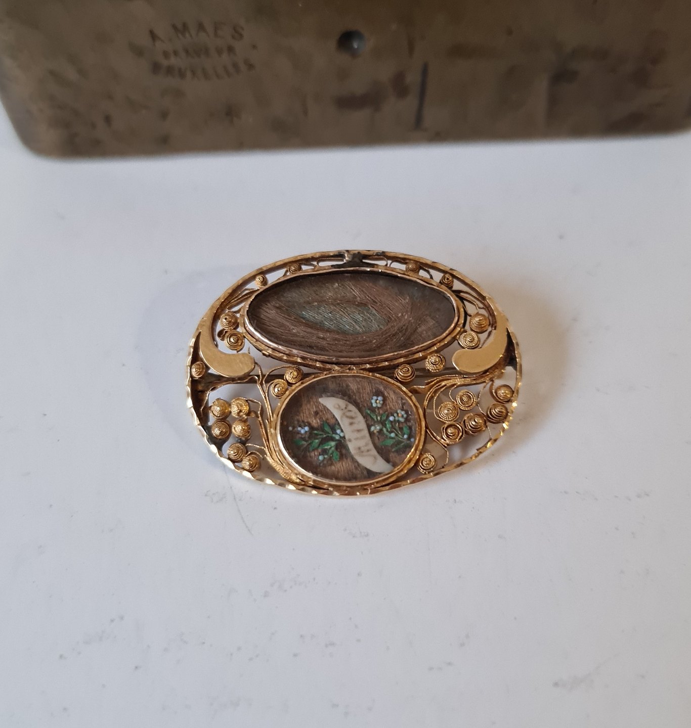 1800tals broche i 14 kt guld - Minde broche med hårlok.