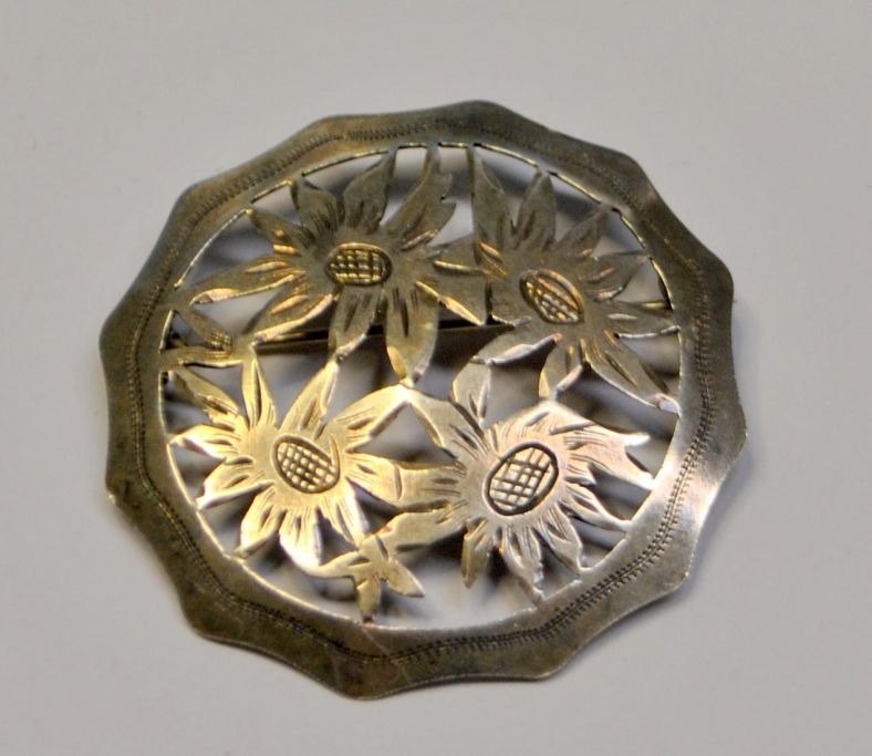 Silver brooch, approx. 1920, Germany. Stamped: 800 needlework. Dia .: 4.2 cm.