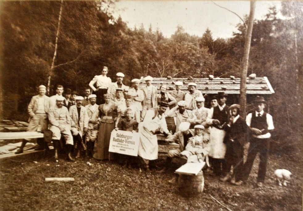 Foto. Salzburger Radfahr Verein Picknick an der Plainburg 1899. Østrig.